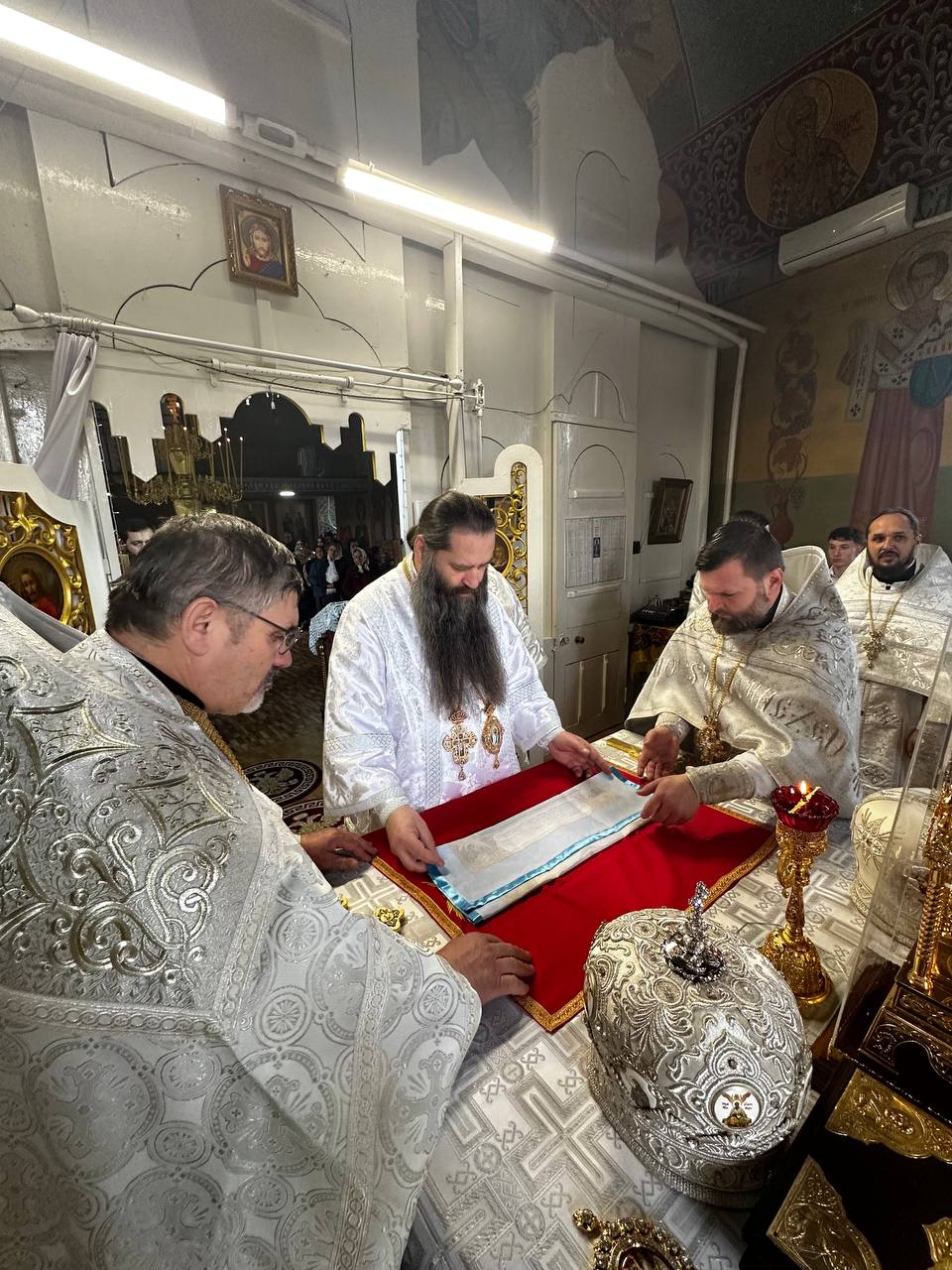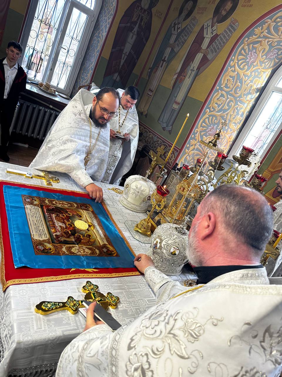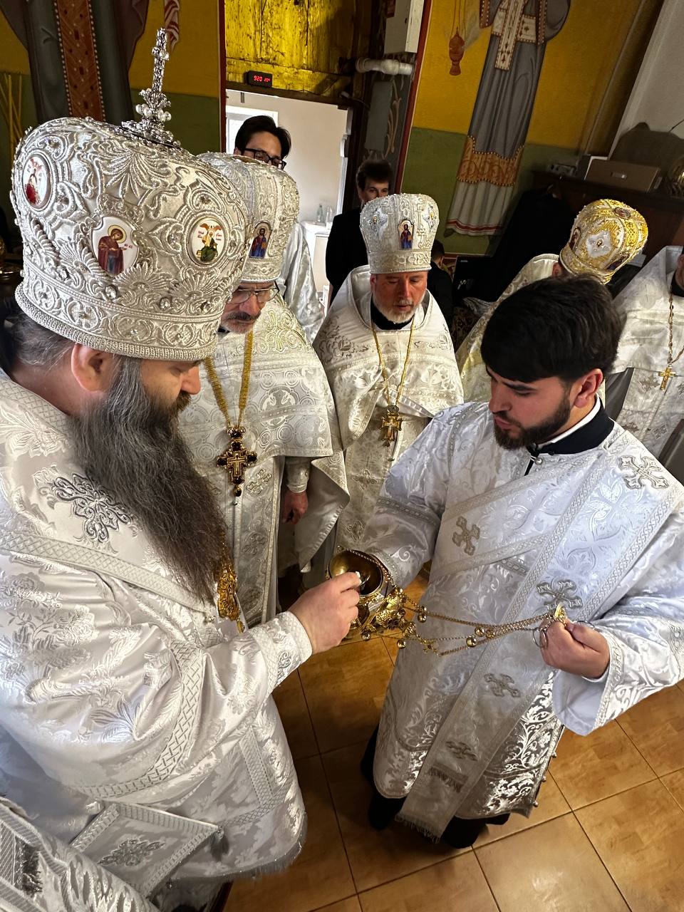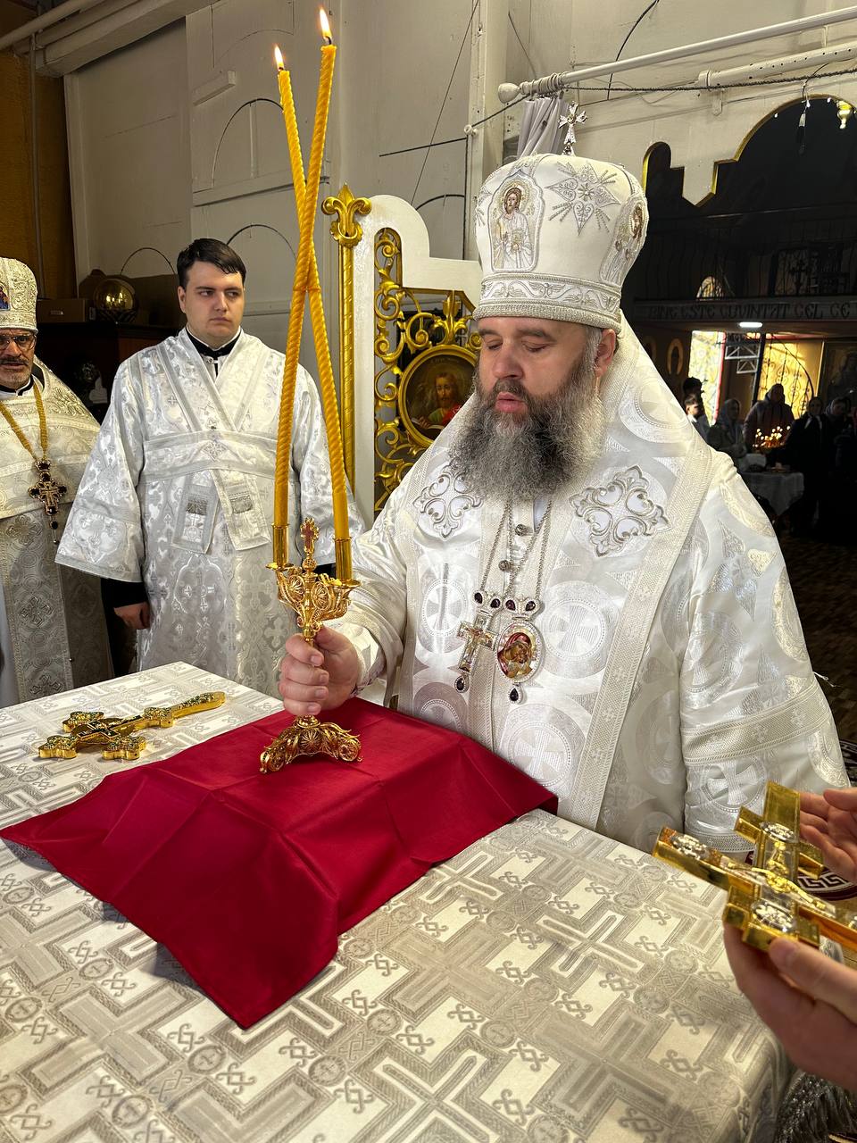 Preasfințiților episcopi au coliturghisit, prot. mitr. Victor Mihalachi, secretarul protopopiatului Strășeni, prot. mitr. Iulian Rață, protopop de Orhei, prot. mitr. Ioan Aga, parohul bisericii gazdă și un sobor de preoți și diaconi.