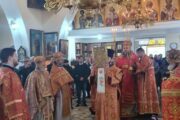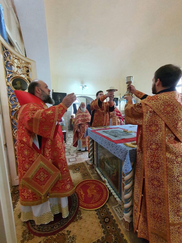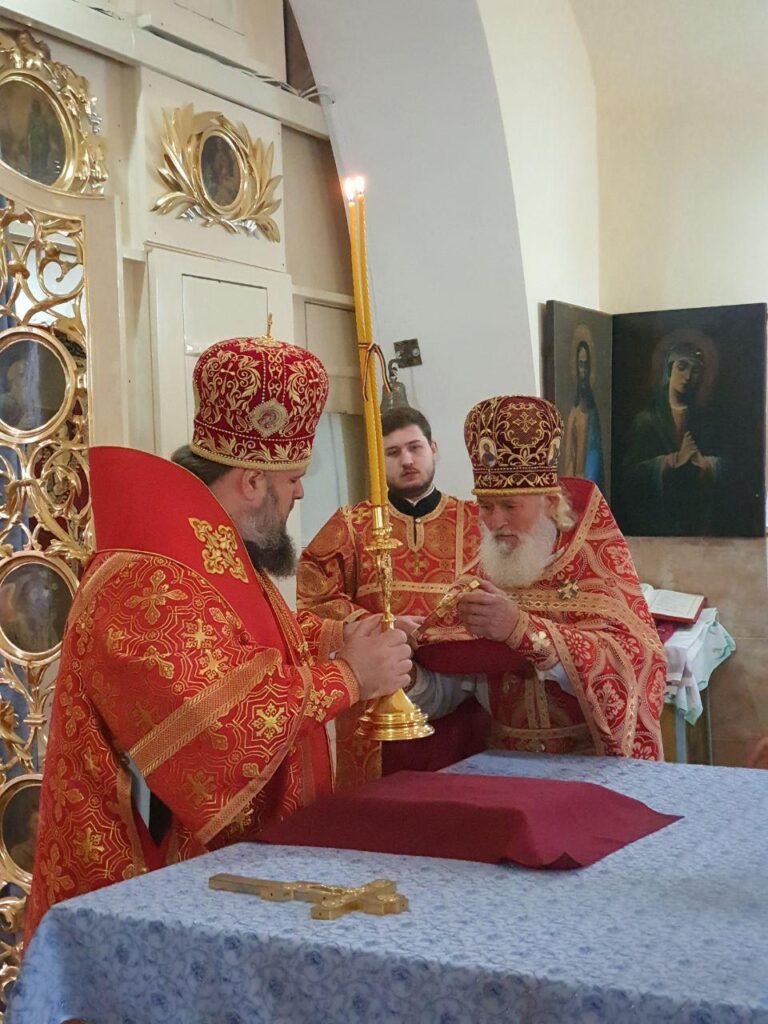 Cu acest prilej în dimineața zilei, Preasfinția Sa a fost întâmpinat de către Prot. Anatolie Stefanov, protopopul raionului Ialoveni și părintele-Paroh, Prot. Andrei Popa.