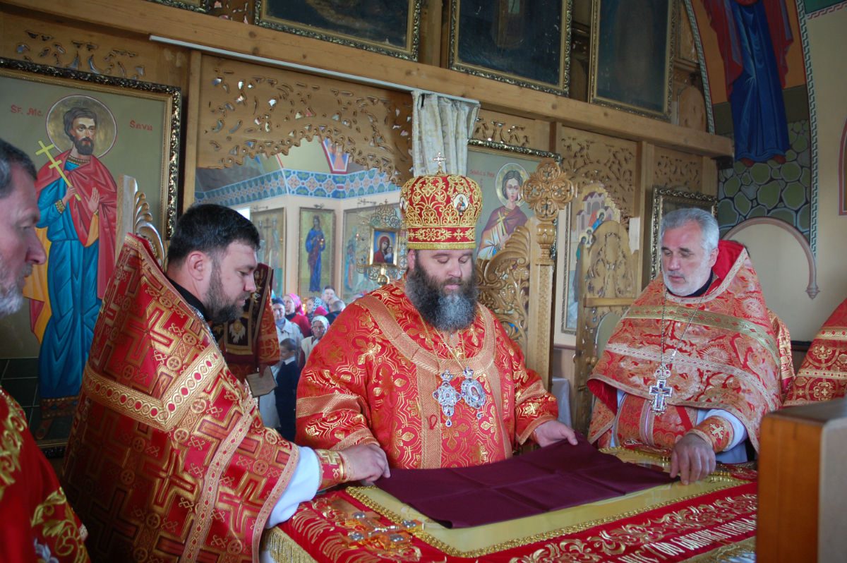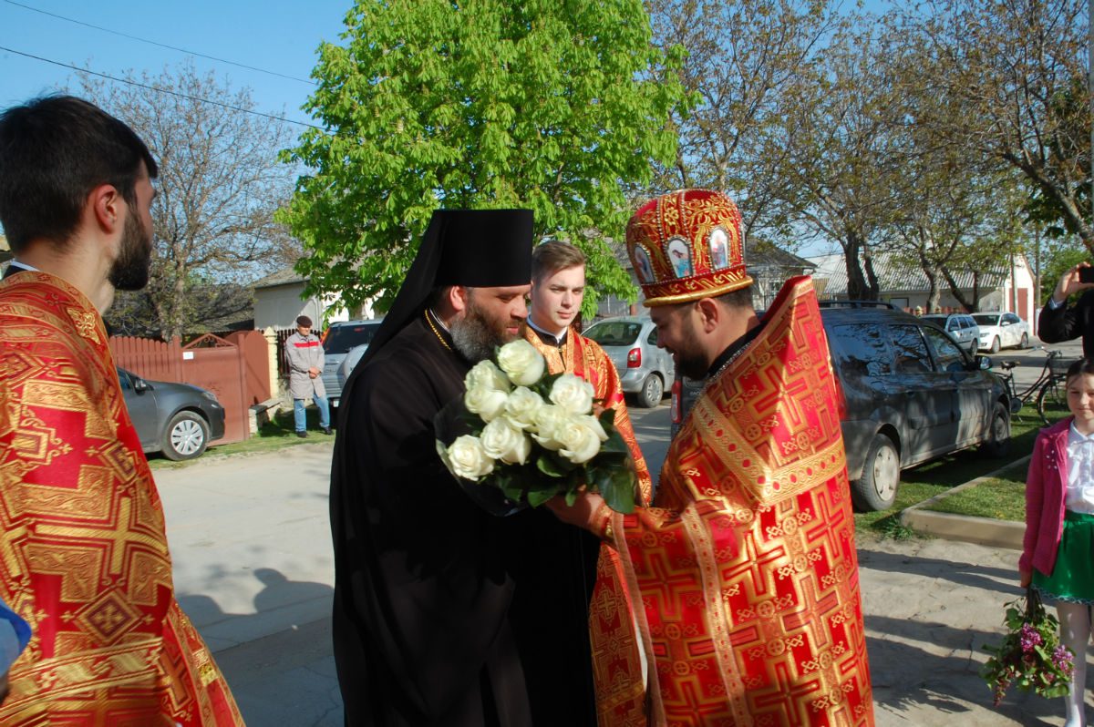 În dimineața zilei, Episcopul a fost întâmpinat cu aleasă bucurie și dragoste creștinească de către parohul bisericii Protoiereul mitrofor Roman Leu, clerul slujitor și creștinii veniți la sfânta biserică.