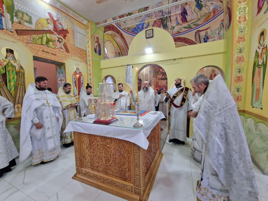 Înainte de începerea Sfintei Liturghii Ierarhul Orheiului a citit rugăciunea la reînnoirea Bisericii. La Vohodul mic, cu binecuvântarea Înaltpreasfințitului Mitropolit Vladimir, pentru merite deosebite în rodnica activitate pastoral-misionară și socială, Protoiereul Victor Botnarenco a fost decorat cu dreptul de a sluji Sfânta Liturghie cu Ușile Împărătești deschise până la Heruvic.
