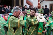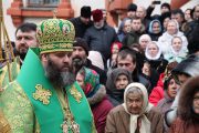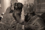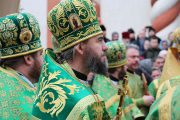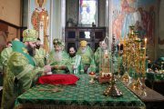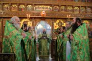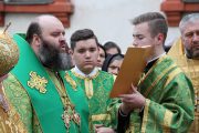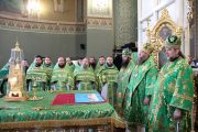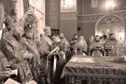 Concomitent au fost săvârşite două Sfinte Liturghii, una în catedrala Înălţării Domnului şi a doua în biserica Adormirii Maicii Domnului.