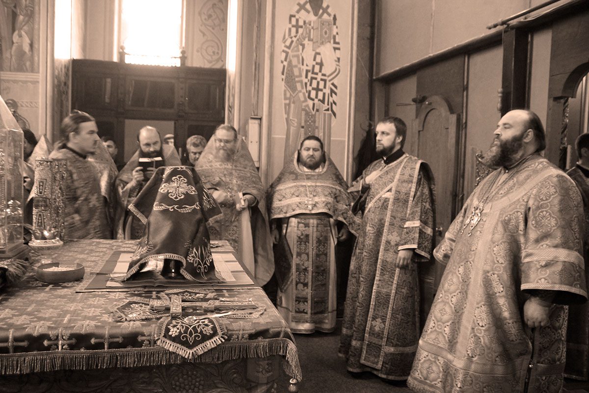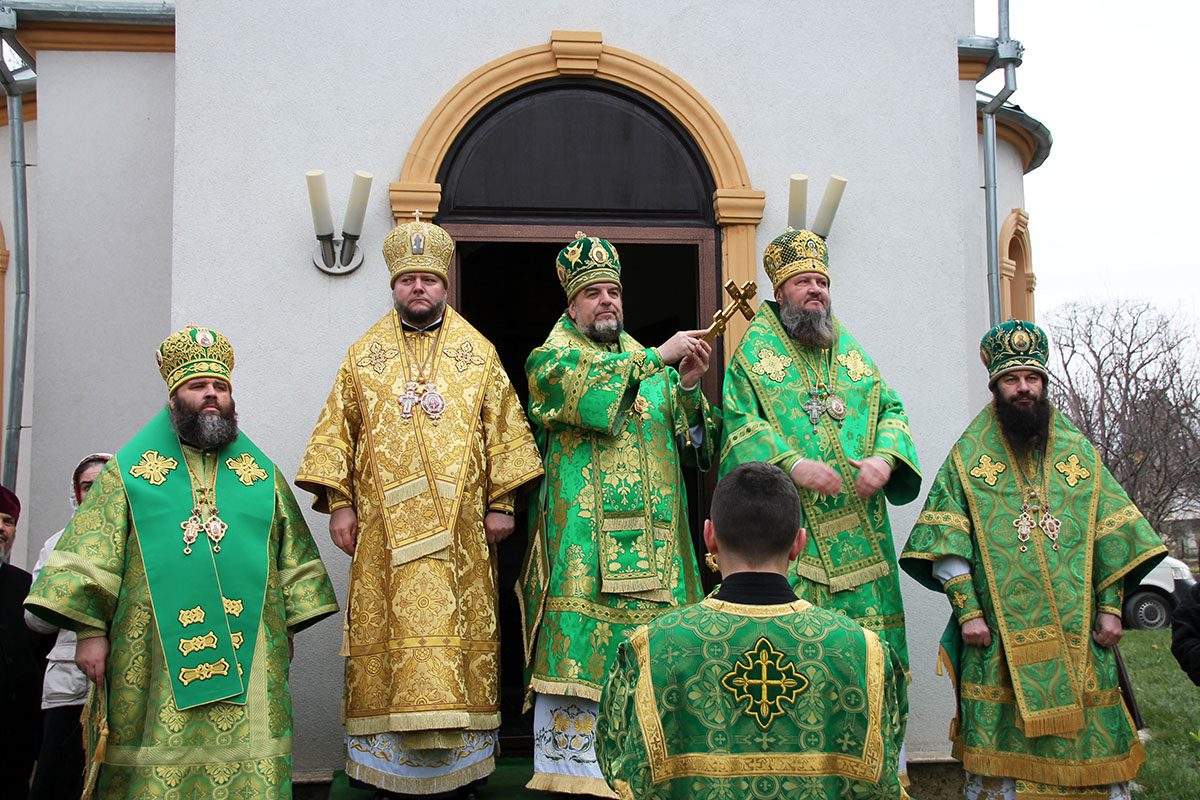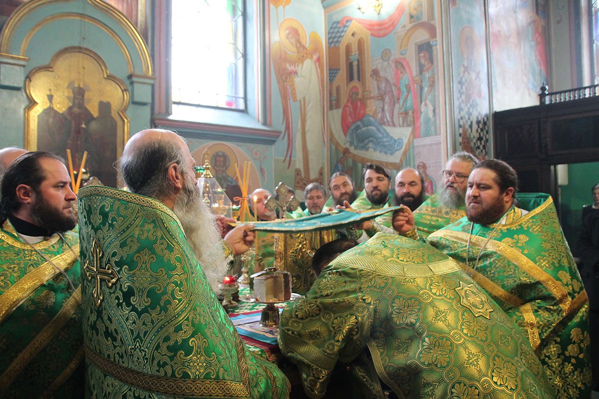 Concomitent au fost săvârşite două Sfinte Liturghii, una în catedrala Înălţării Domnului şi a doua în biserica Adormirii Maicii Domnului.