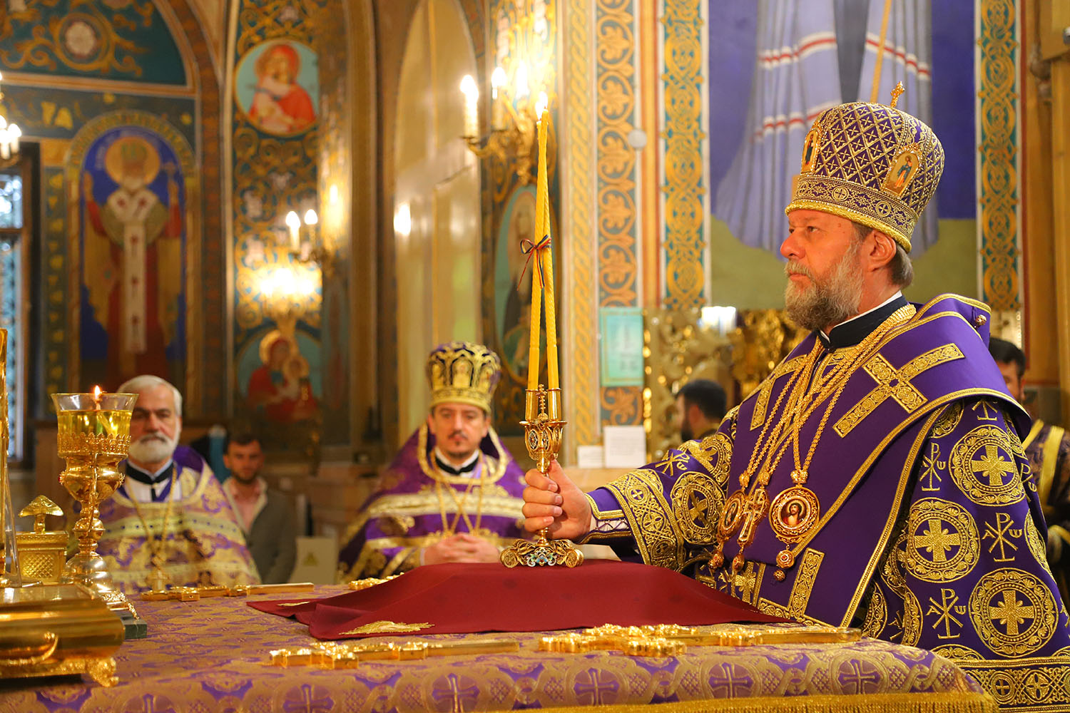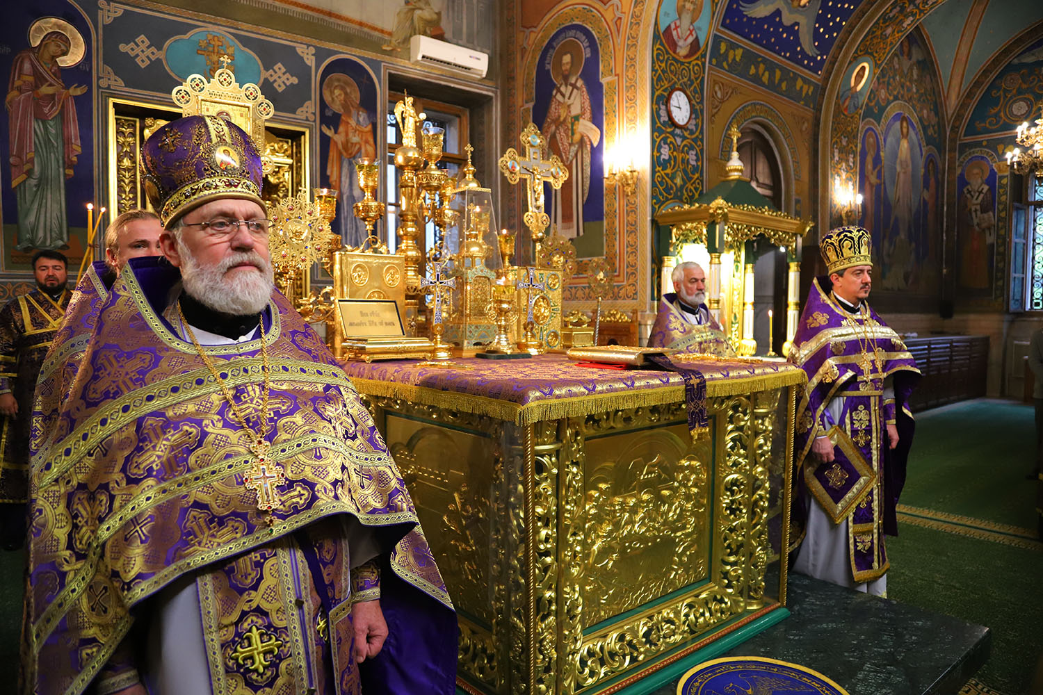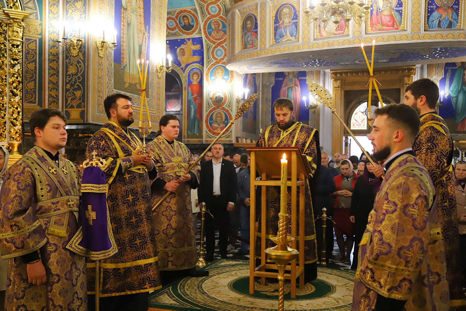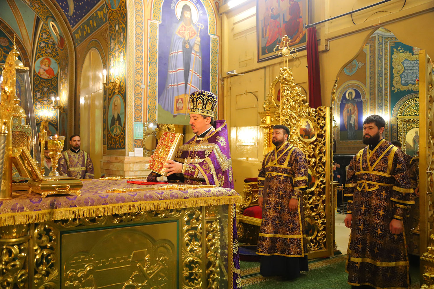 Înaltpreasfinției Sale i-au coliturghisit: Secretarul mitropolitan și ecleziarh al Catedralei mitropolitane, Prot mitr. Vadim Cheibaș, împreună cu soborul de preoți și diaconi.