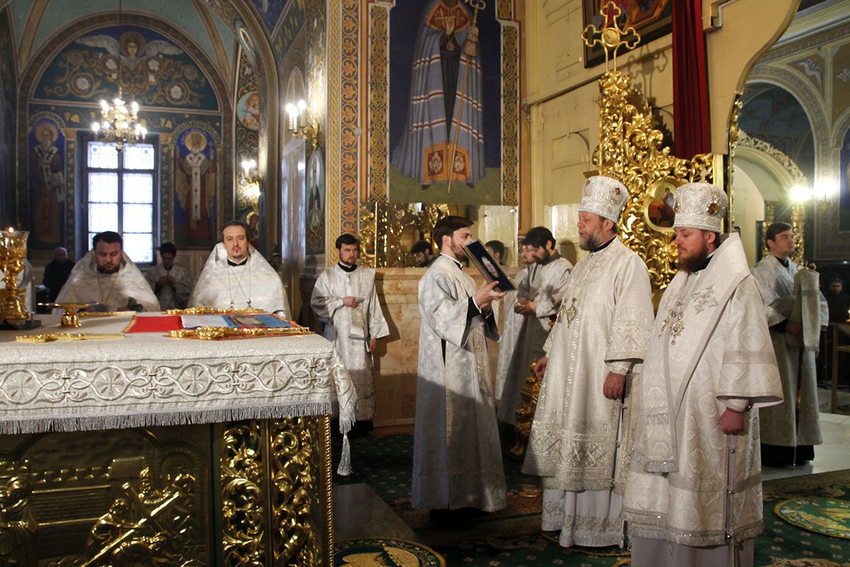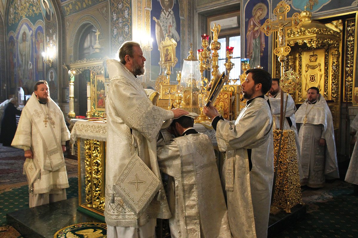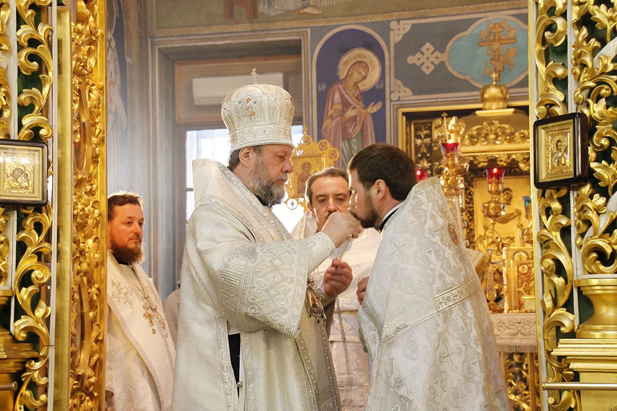 În timpul serviciului divin, Vlădica Vladimir l-a hirotonit în treapta de preot pe diaconul Serghei Gladuneac, student în anul IV, la Academia de Teologie Ortodoxă din mun. Chișinău, pe seama parohiei cu hramul Adormirea Maicii Domnului, din s. Dumitreni, r. Florești.