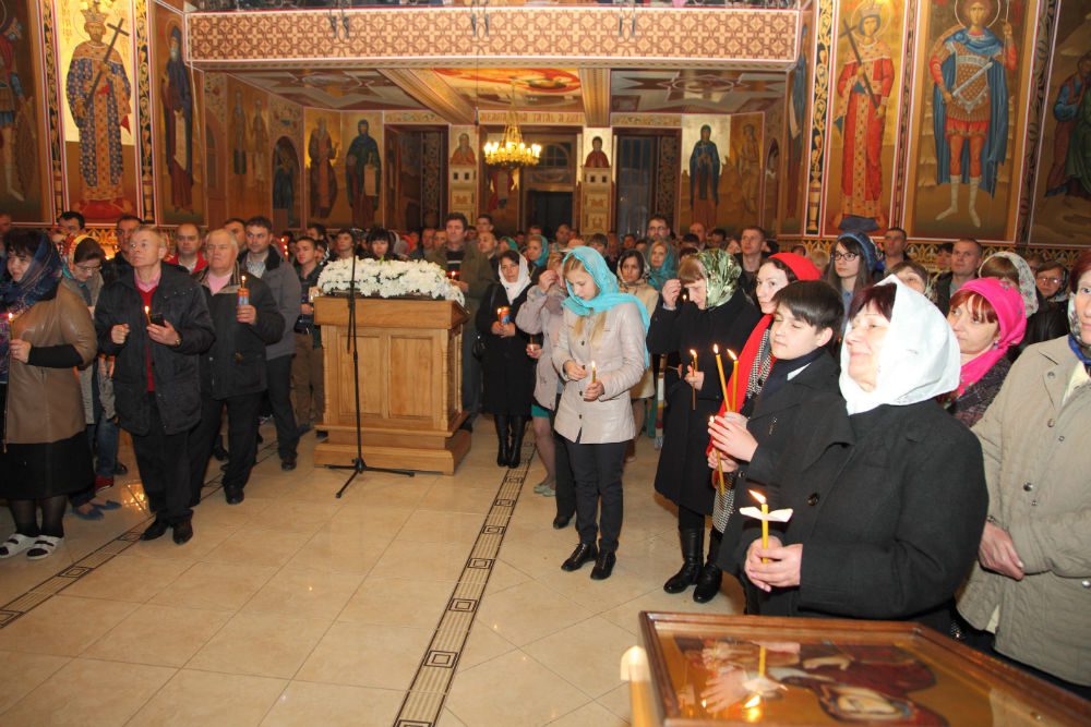 Cu credinţă şi cu speranţă în suflet la miezul nopții creștinii au primit Sfânta Lumină de la preoți. Mai apoi au înconjurat biserica, iar la întoarcere au cântat „Hristos a Înviat” şi s-au rugat pentru sănătate, bucurie şi pace sufletească.