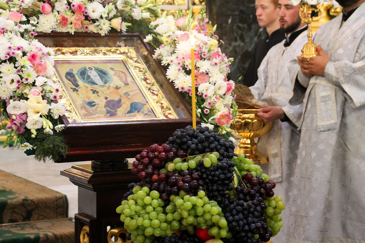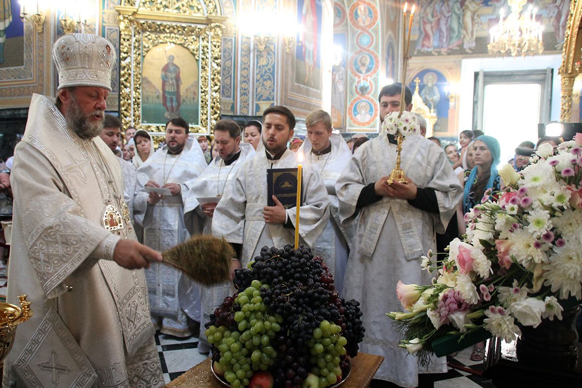 După slujbă, conform tradiţiei, ÎPS Mitropolit Vladimir a sfinţiţi strugurii şi alte roade, mulţumind împreuncă cu slujitorii şi credincioşii pentru toate binefacerile lui Dumnezeu, care dăruieşte oamenilor darurile Sale, daruri care se obţin prin binecuvântarea lui Dumnezeu.