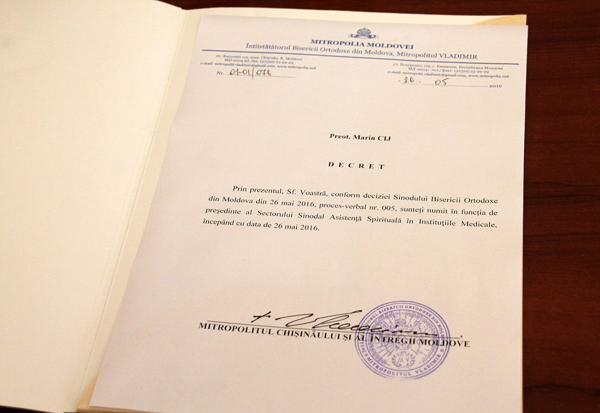 Acum un an, în ședința ordinară a Sinodului Bisericii Ortodoxe din Moldova din 26.05.2016, a fost luată decizia de a se înființa un nou Sector Sinodal – Asistenţă Spirituală în Instituţiile Medicale.