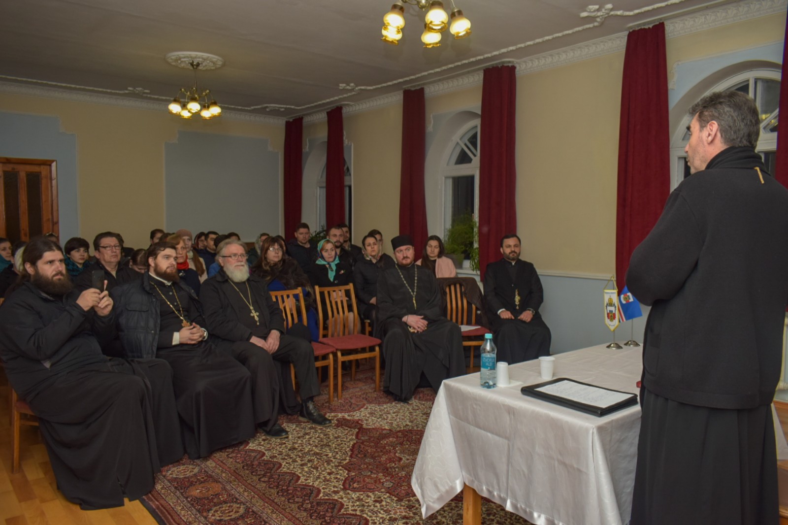 Partea a doua a întâlnirii a fost dedicată întrebărilor venite din sală, întrebări la care părintele Ștefan a răspuns cu obiectivitate, captivând auditoriul.