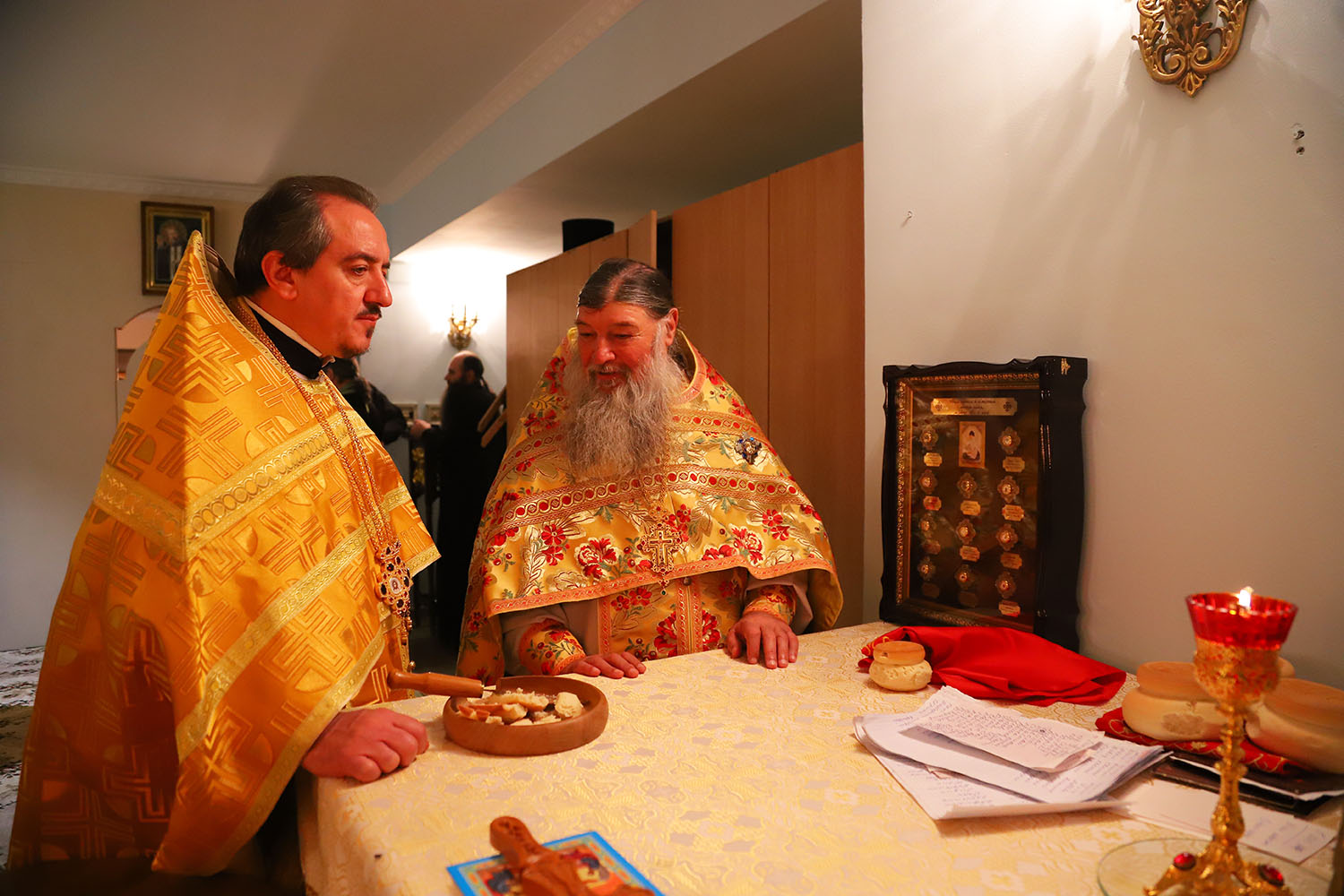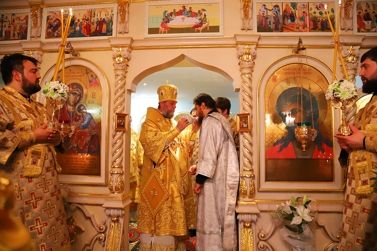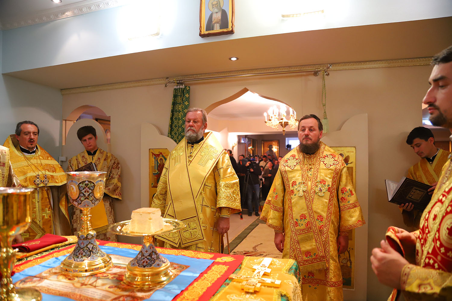 Înainte de începerea Sfintei Liturghii, PS Episcop Ioan al Sorocii a săvârșit slujba de sfințire a Prestolului din latura dreaptă a Altarului, în cinstea Sf. Cuv. Serafim de Sarov.
