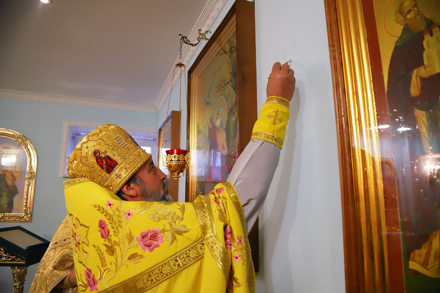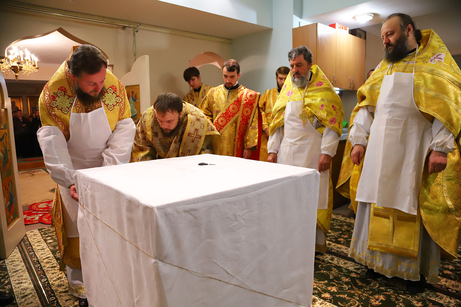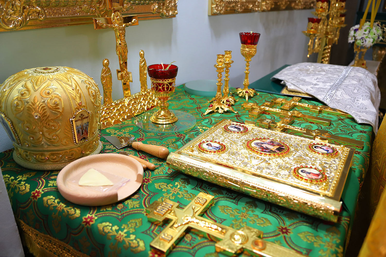 Înainte de începerea Sfintei Liturghii, PS Episcop Ioan al Sorocii a săvârșit slujba de sfințire a Prestolului din latura dreaptă a Altarului, în cinstea Sf. Cuv. Serafim de Sarov.