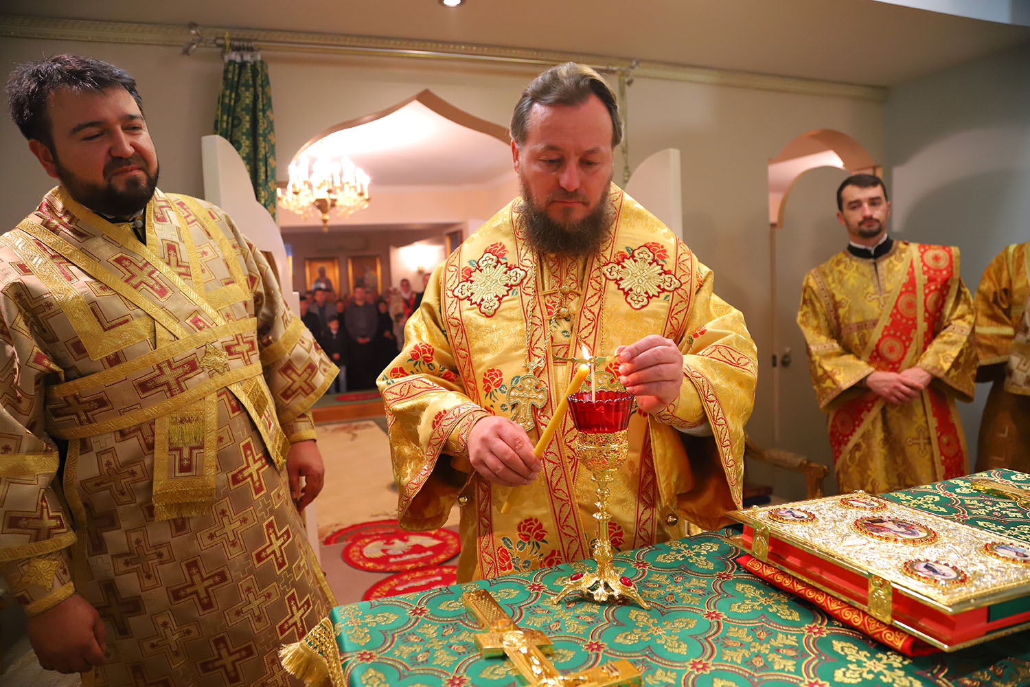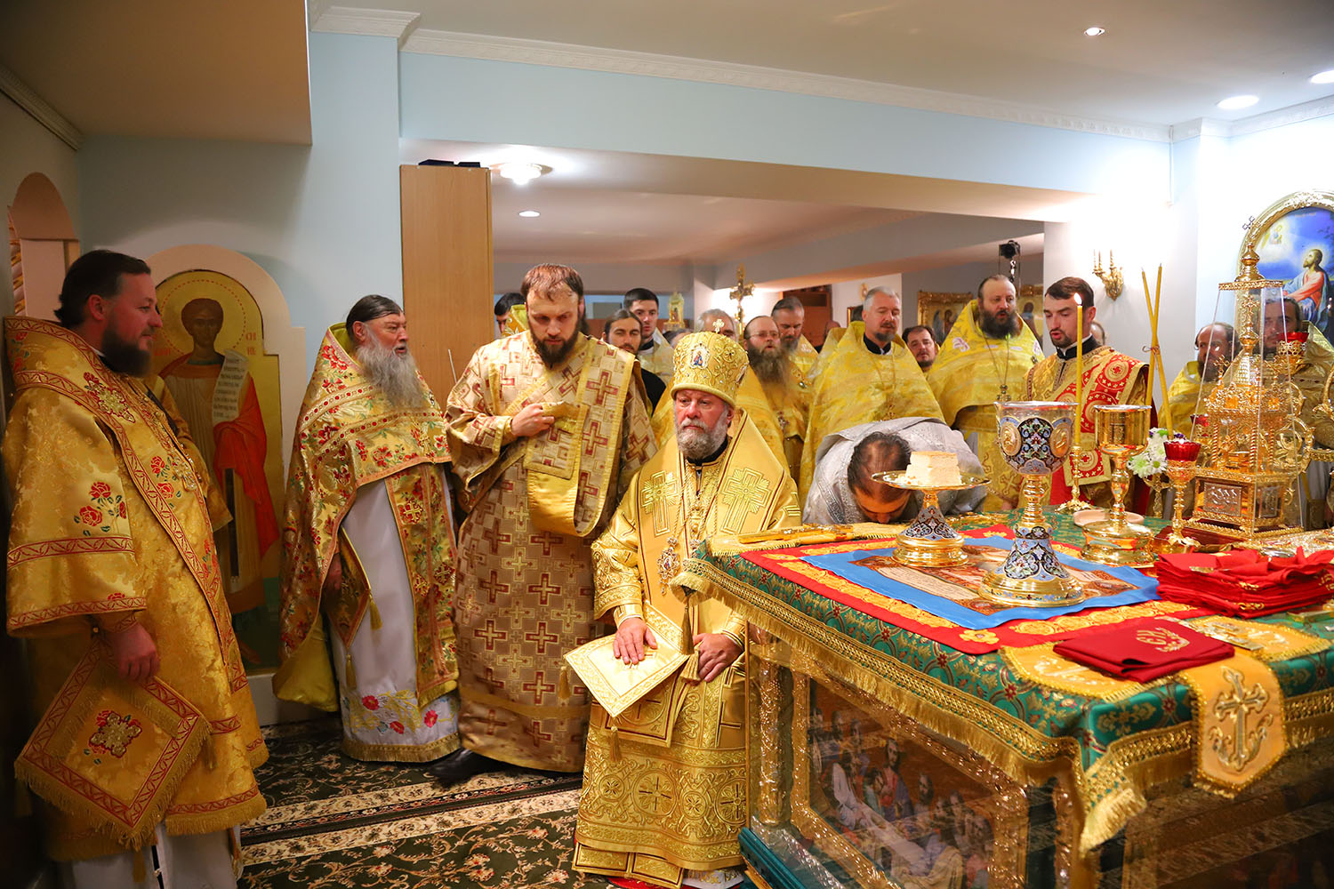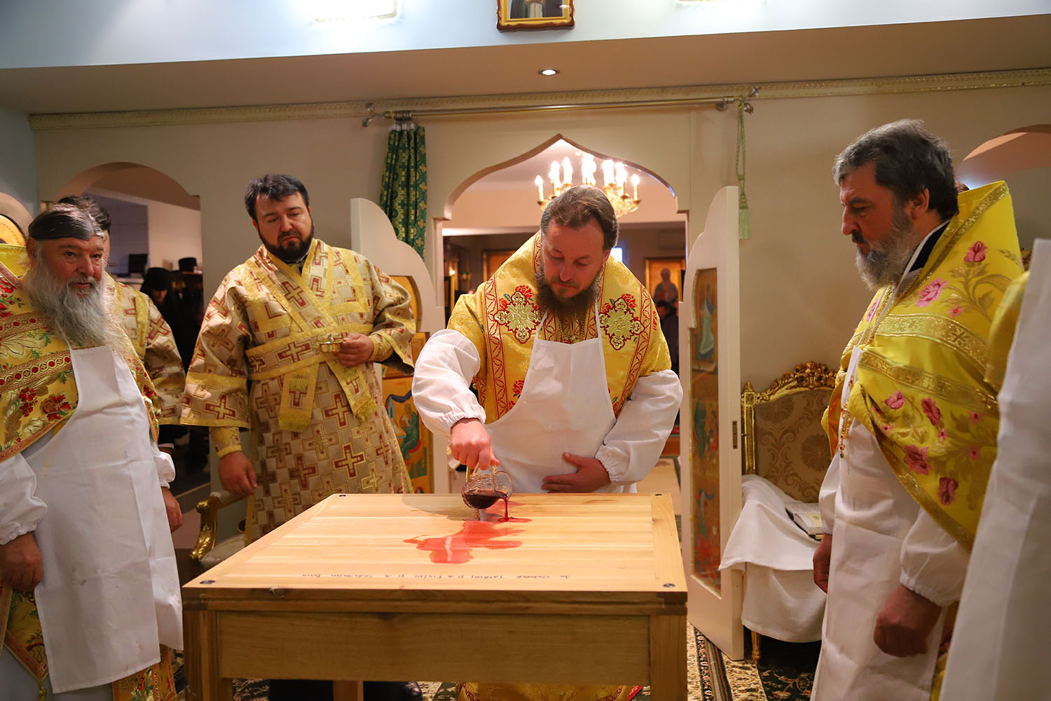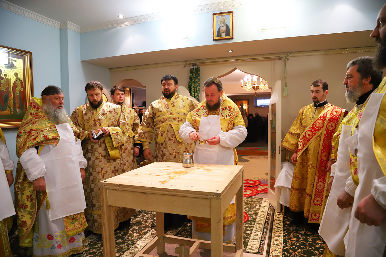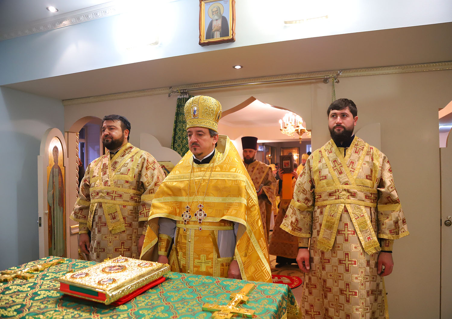 Înainte de începerea Sfintei Liturghii, PS Episcop Ioan al Sorocii a săvârșit slujba de sfințire a Prestolului din latura dreaptă a Altarului, în cinstea Sf. Cuv. Serafim de Sarov.