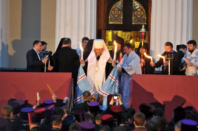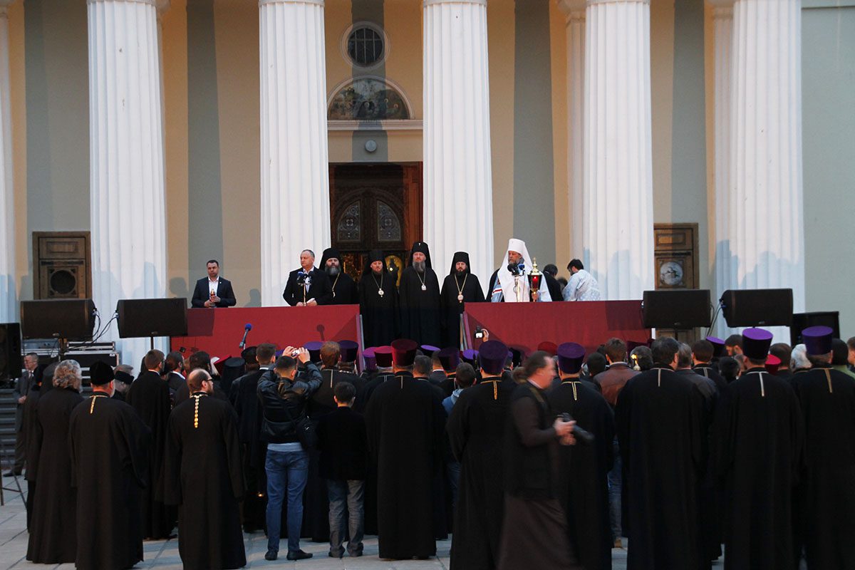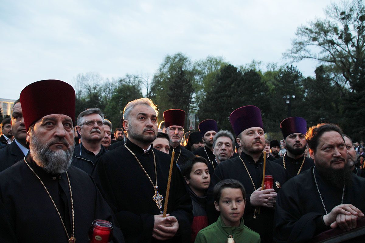 Ajungând în scuarul Catedralei mitropolitane, Întâistătătorul s-a adresat către popor, vestind tuturor că şi în acest an Mântuitorul s-a milostivit de turma Sa, trimițând din cer semnul minunat al dragostei Sale pentru creștinii drept-măritori.