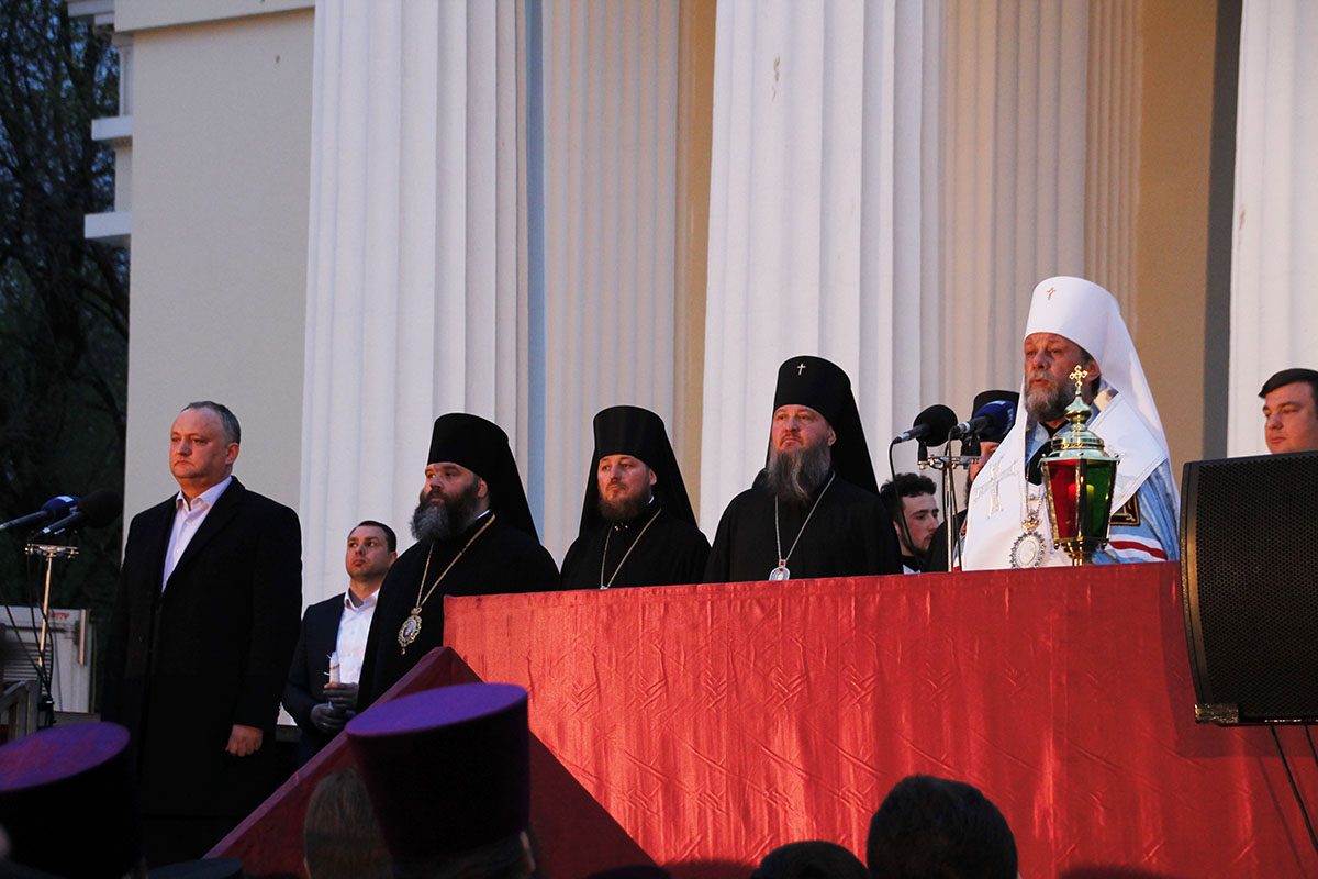 În seara zilei, delegația Bisericii Ortodoxe din Moldova, în frunte cu ÎPS Mitropolit Vladimir, care a mers la Ierusalim pentru a lua Sfânta Lumină, a fost întâmpinată cu deosebită bucurie de către Arhierei, Președintele RM, dl Igor Dodon, precum și numeroși preoți și credincioși veniți din toate colțurile republicii.