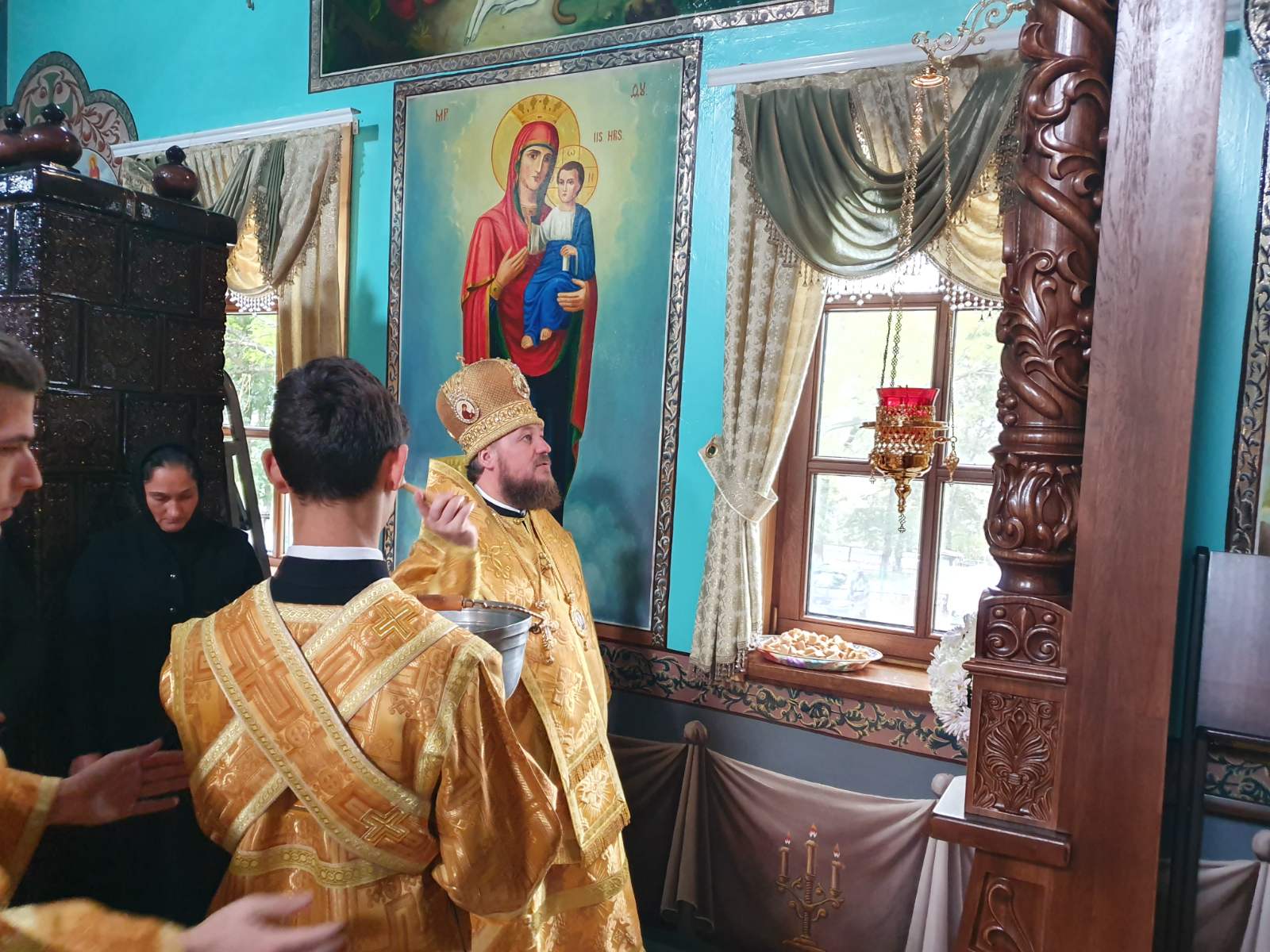 La sfârșitul slujbei arhiereul vicar al Mitropoliei Moldovei a sfințit o icoană a Maicii Domnului, oferită în dar bisericii de către ctitori, a săvârșit înconjurul locașului sfânt, apoi a rostit cuvânt de învățătură în fața drept-măritoarei adunări, transmițând mesajul părintesc de felicitare al Întâistătătorului și al arhipăstorului locului.