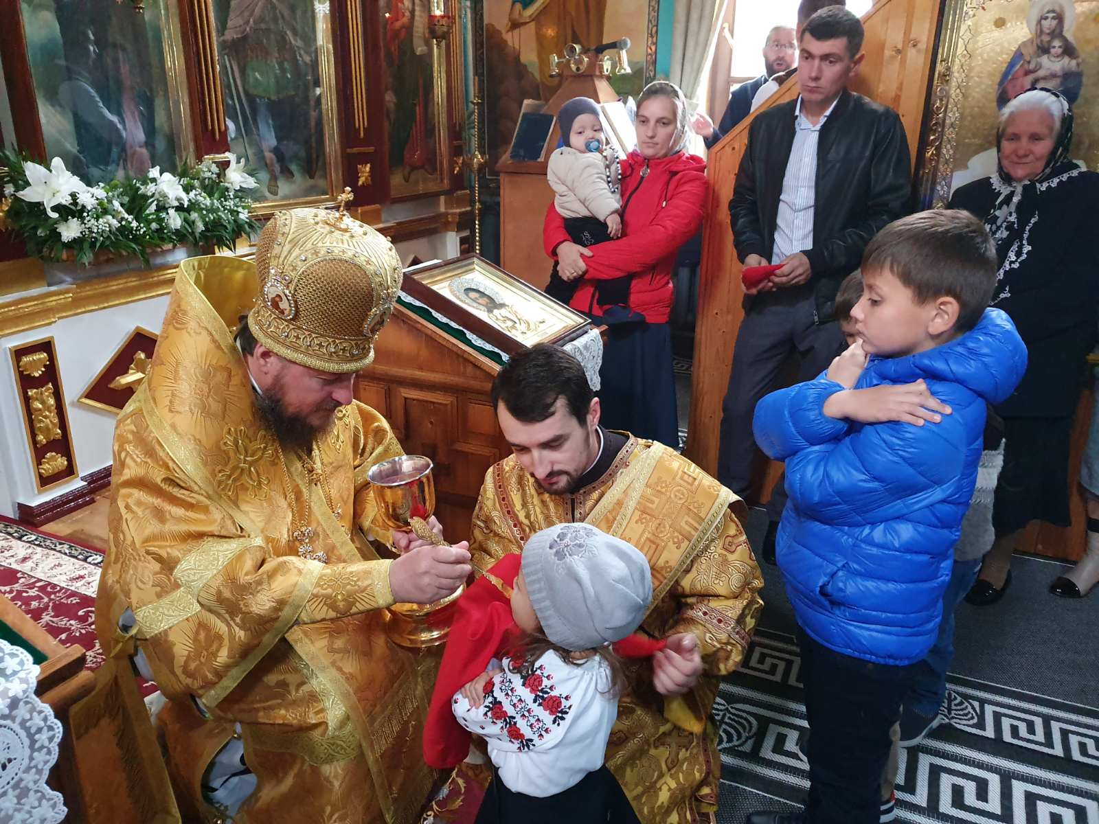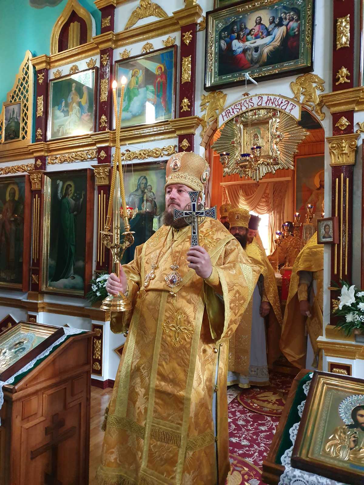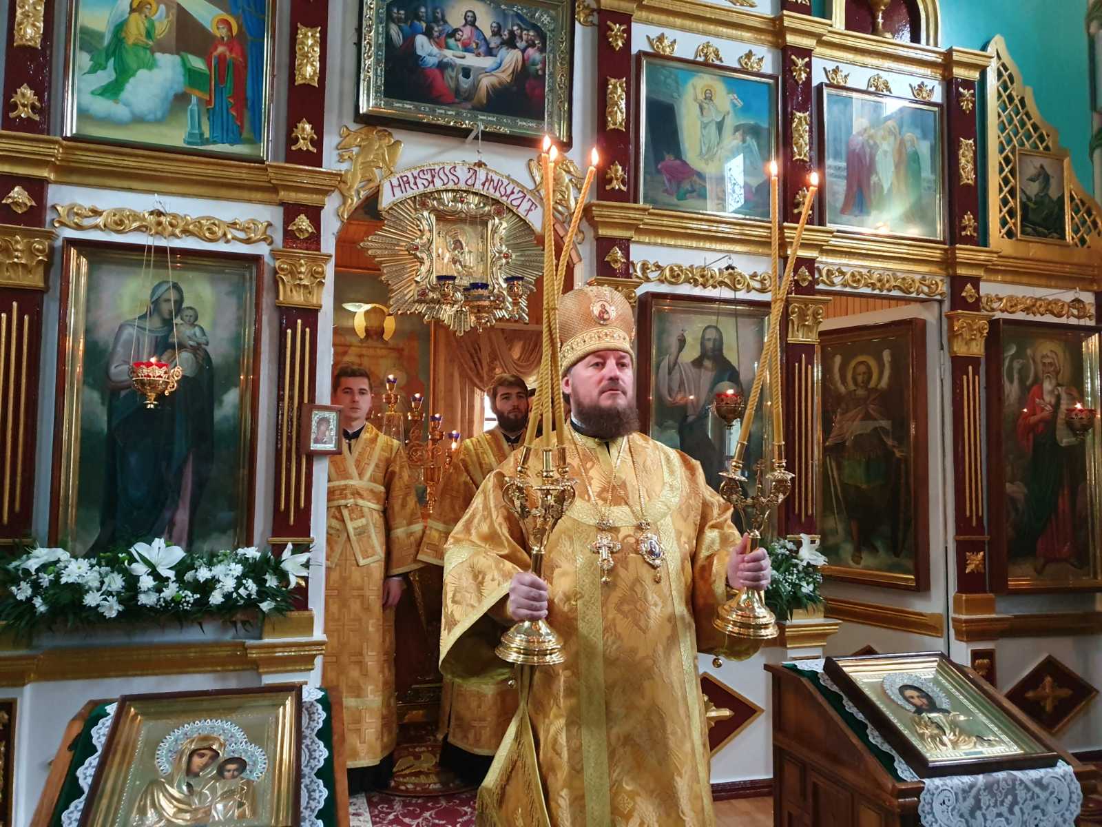 Având binecuvântarea Înaltpreasfințitului VLADIMIR, Mitropolitul Chișinăului și al întregii Moldove, dar și a Preasfințitului NICODIM, Episcop de Edineț și Briceni, vlădica Ioan a săvârșit Sfânta Liturghie praznicală în biserica „Sfântul Ioan Teologul”.