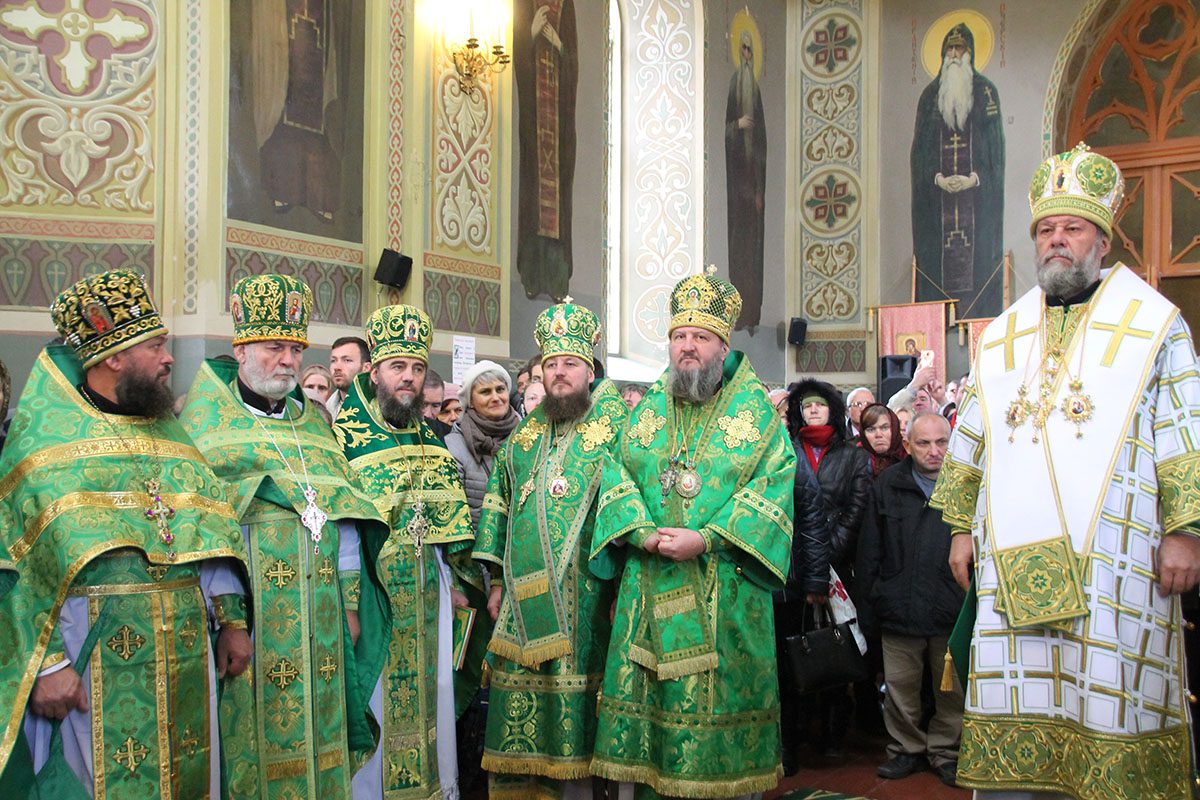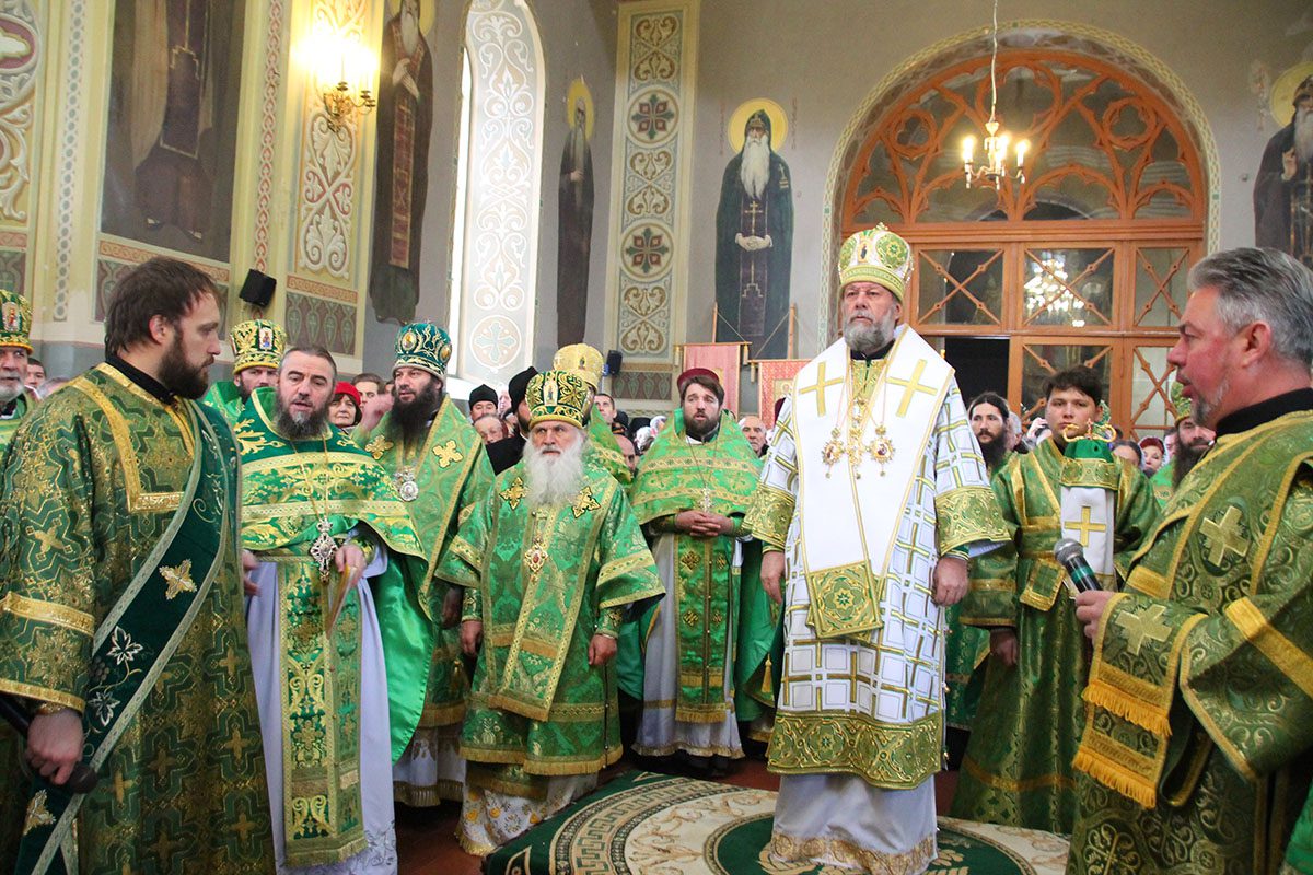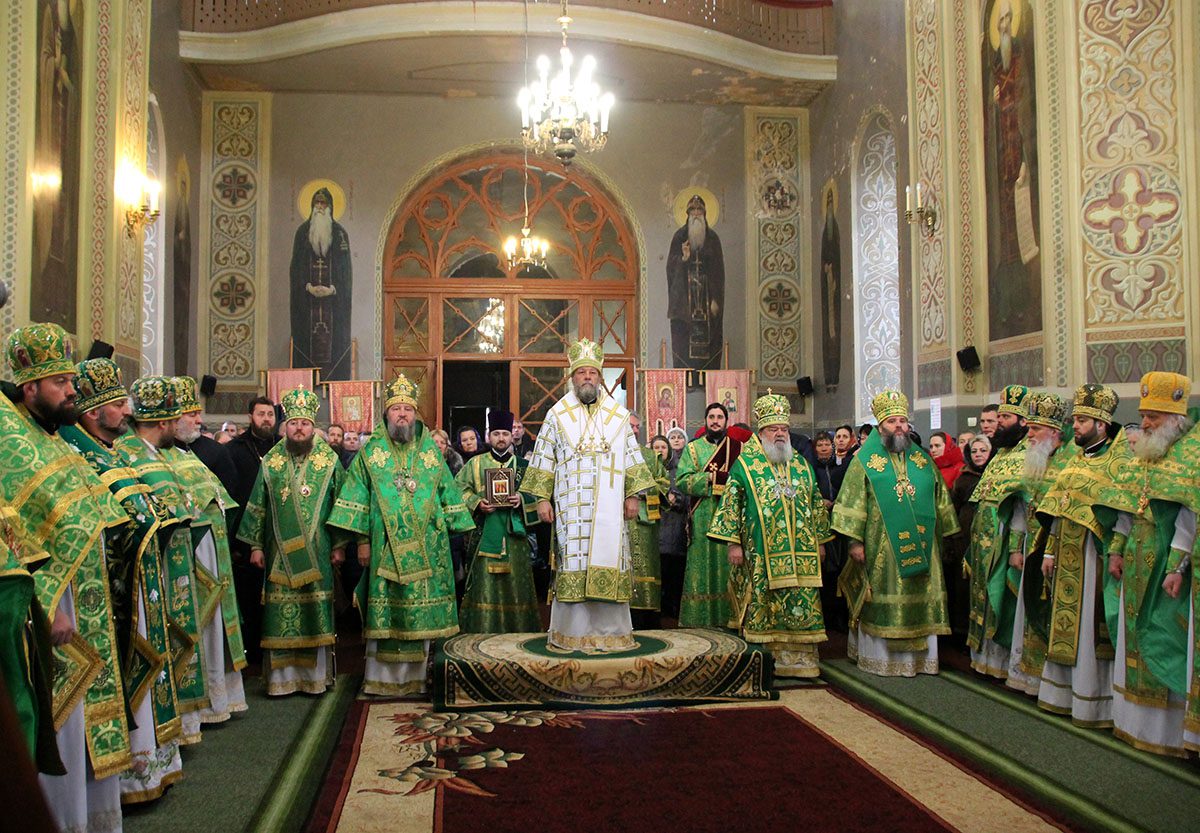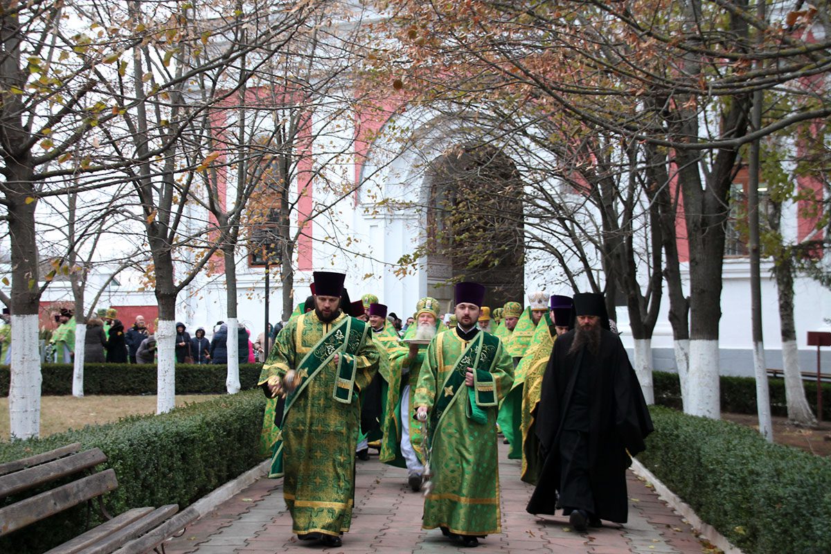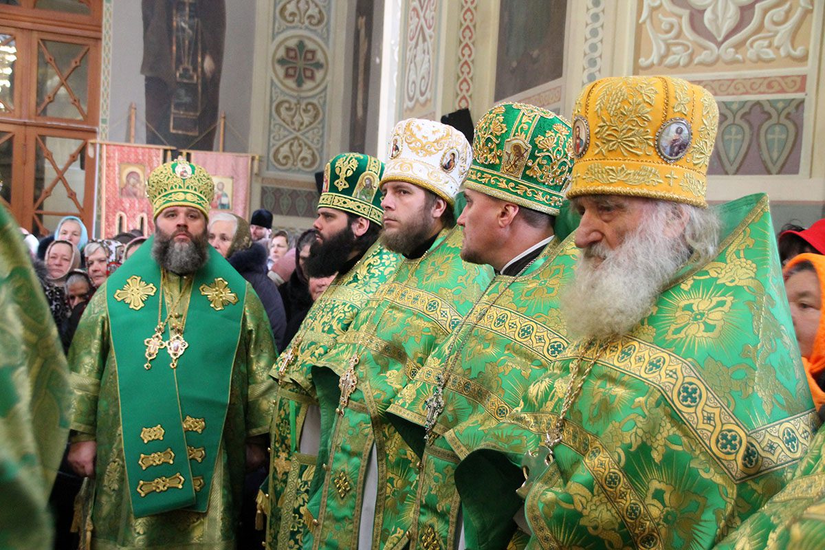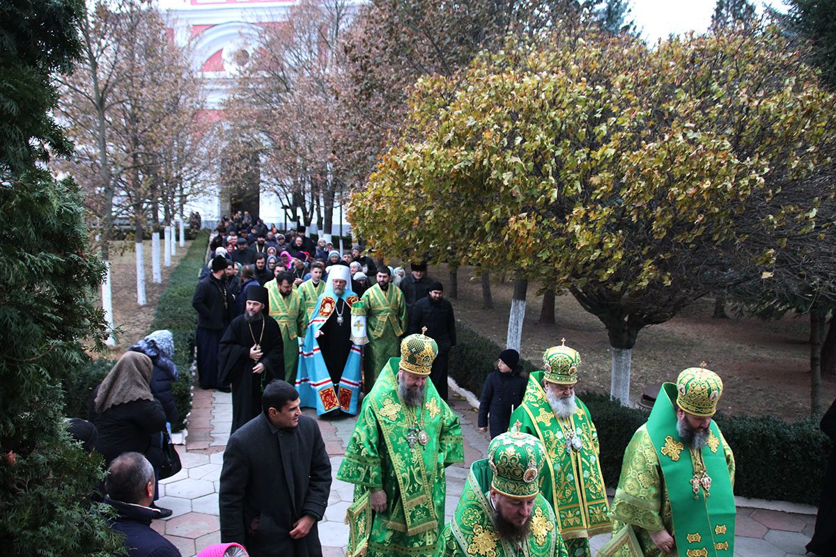 Concomitent au fost săvârşite două Sfinte Liturghii, una în catedrala Înălţării Domnului unde a liturgisit ÎPS Mitropolit Vladimir, Întîistătător al Bisericii Ortodoxe din Moldova, împreună cu ÎPS Sava, Arhiepiscop de Tiraspol și Dubăsari, PS Nicodim, Episcop de Edineț și Briceni, PS Ioan, Episcop de Soroca, Vicar mitropolitan și PS Siluan, Episcop de Orhei, Vicar mitropolitan şi a doua în biserica Adormirii Maicii Domnului, unde au liturghisit ÎPS Mitropolit Vichentie de Tașkent și Uzbekistan și PS Irineu de Orsk și Gai.