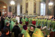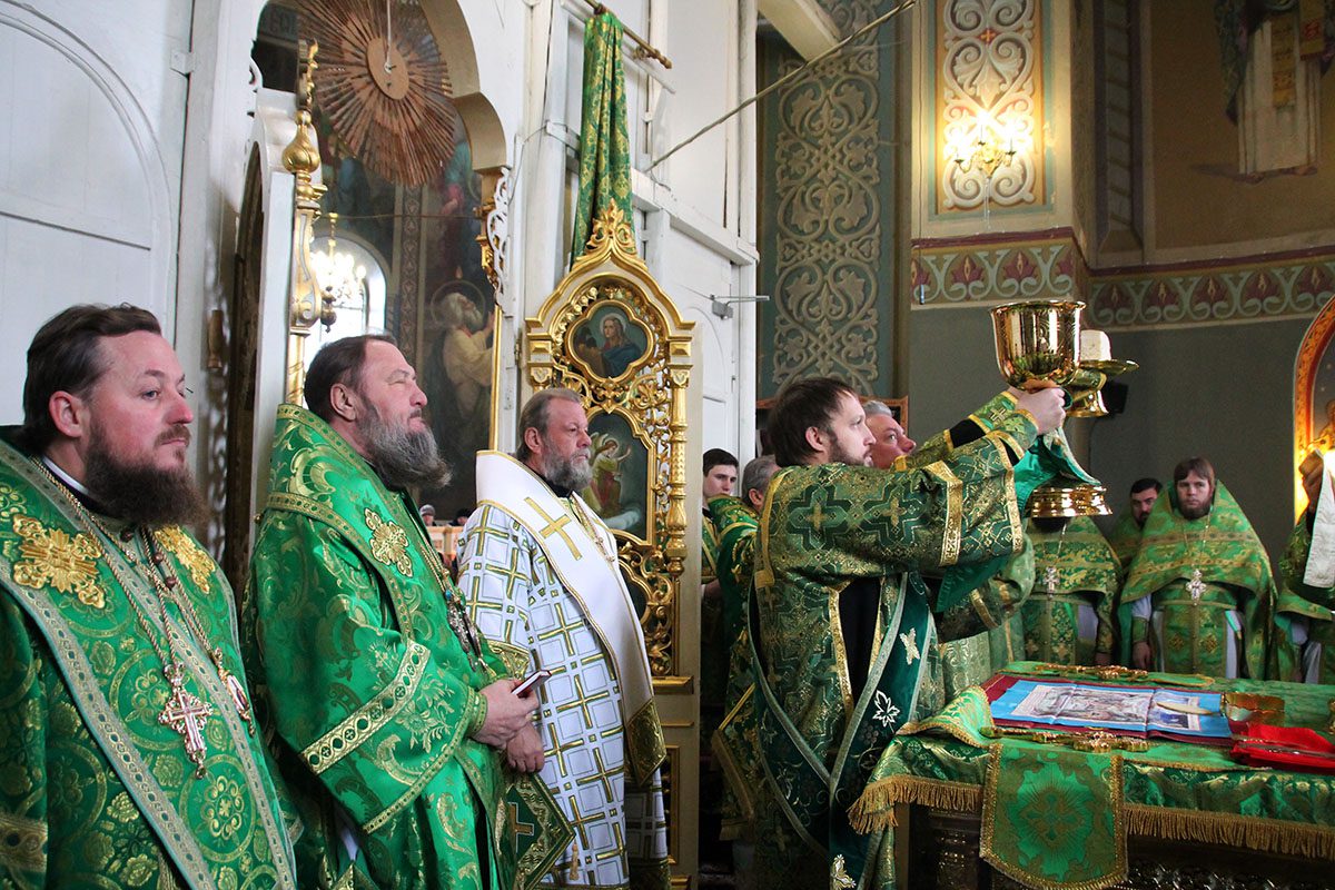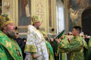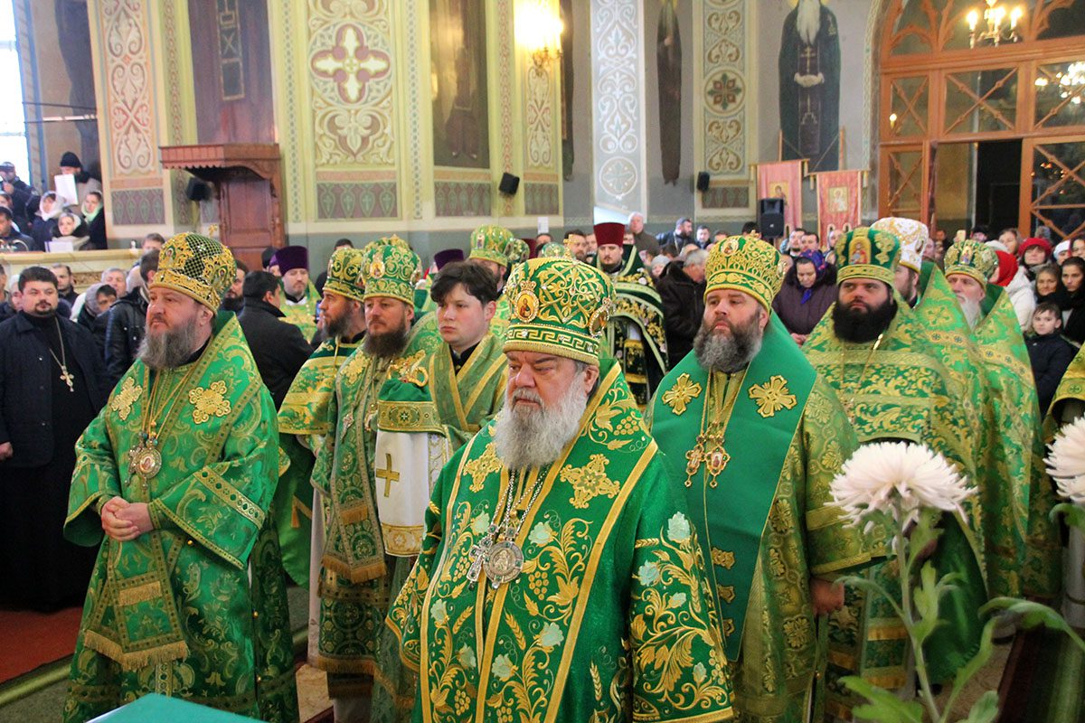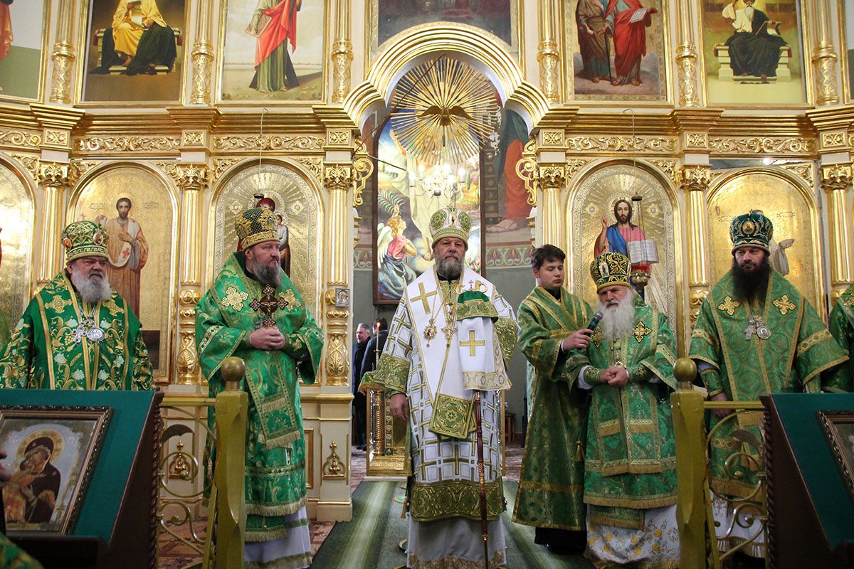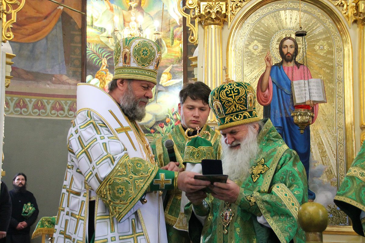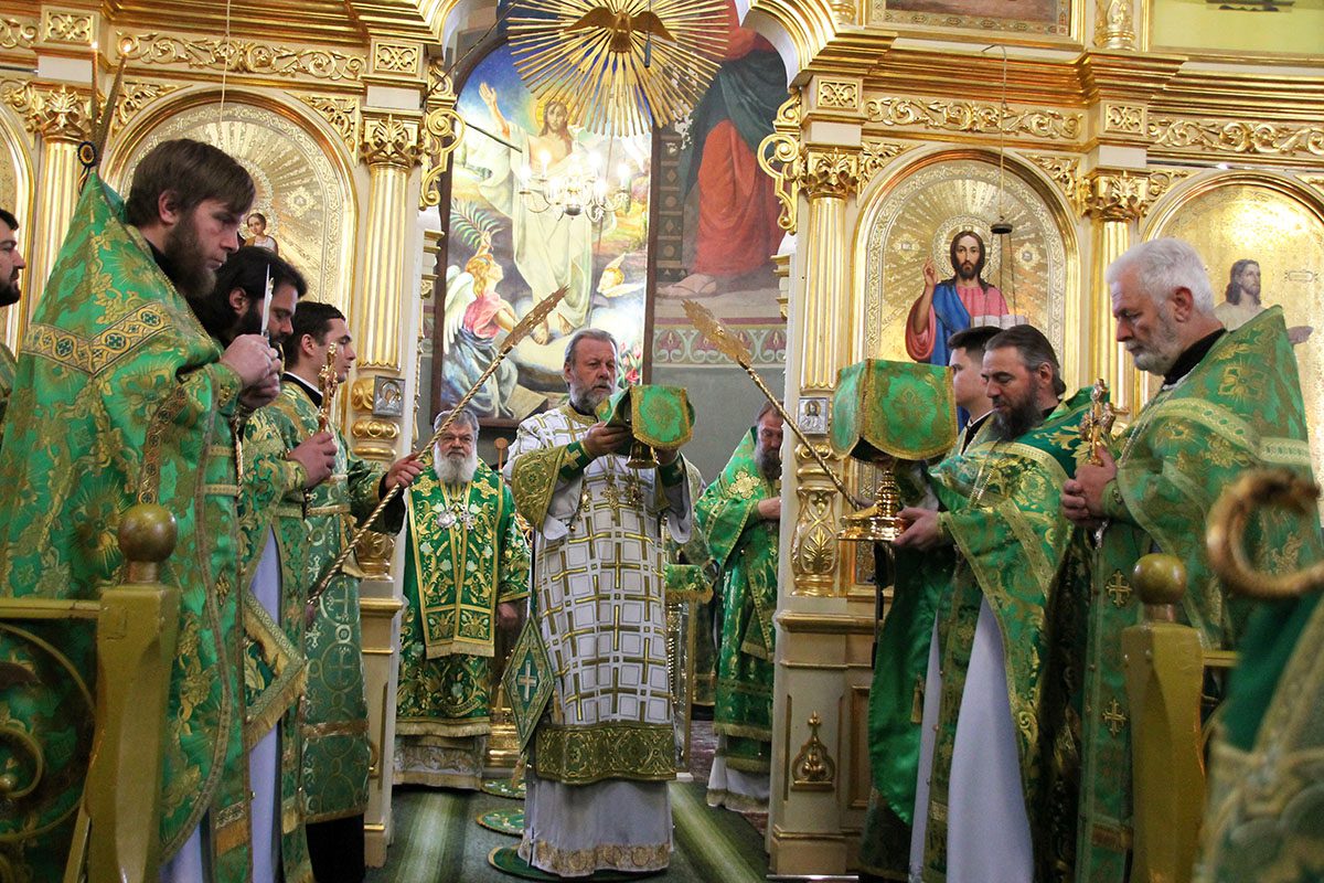 Concomitent au fost săvârşite două Sfinte Liturghii, una în catedrala Înălţării Domnului unde a liturgisit ÎPS Mitropolit Vladimir, Întîistătător al Bisericii Ortodoxe din Moldova, împreună cu ÎPS Sava, Arhiepiscop de Tiraspol și Dubăsari, PS Nicodim, Episcop de Edineț și Briceni, PS Ioan, Episcop de Soroca, Vicar mitropolitan și PS Siluan, Episcop de Orhei, Vicar mitropolitan şi a doua în biserica Adormirii Maicii Domnului, unde au liturghisit ÎPS Mitropolit Vichentie de Tașkent și Uzbekistan și PS Irineu de Orsk și Gai.