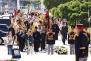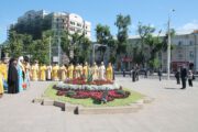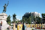 Un alt moment deosebit al sărbătorii a constituit procesiunea religioasă cu depunerea de coroane de flori la monumentul Marelui Voievod .