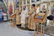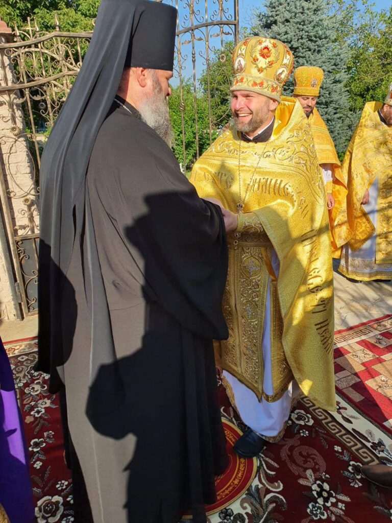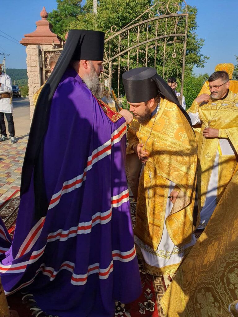 Cu acest prilej în dimineața zilei, Preasfinția Sa a fost întâmpinat de către Prot. Iulian Rață, Protopopul de Orhei și parohul bisericii din localitate.