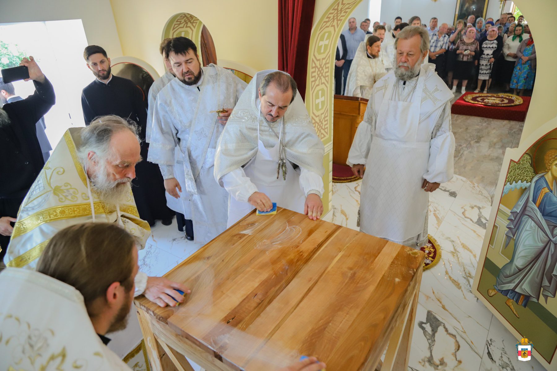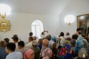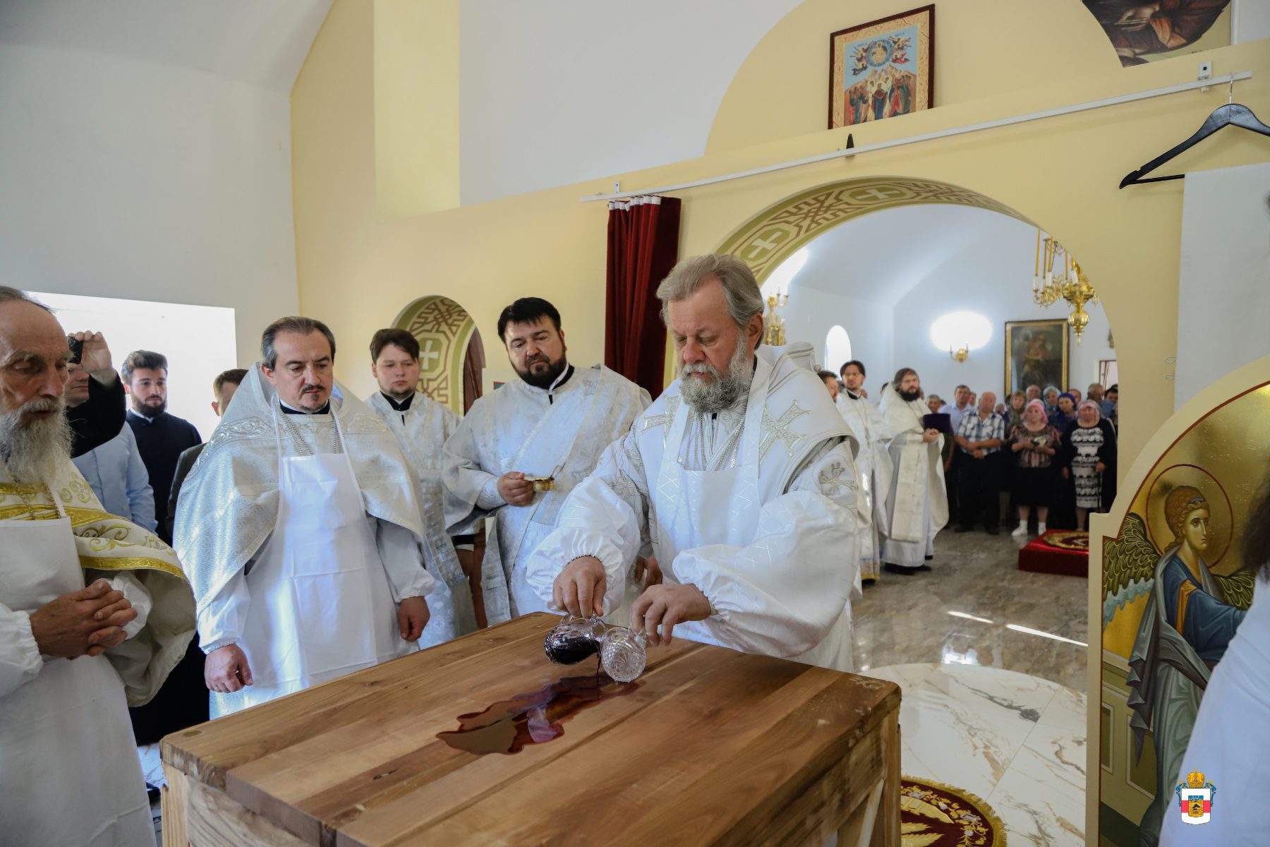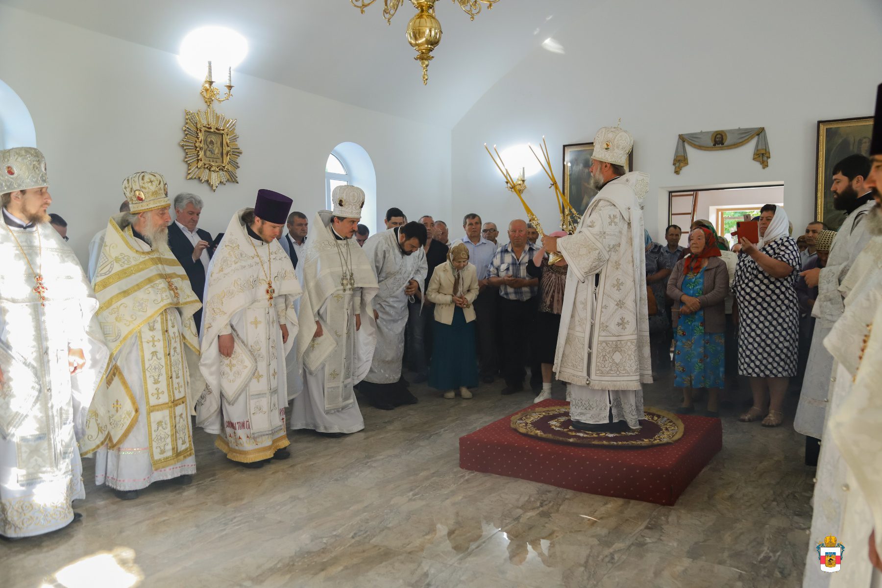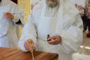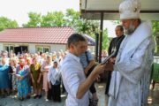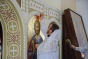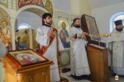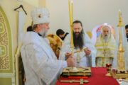 În dimineața zilei, Mitropolitul a fost întâmpinat de către PC Arhim. Filaret (Cuzmin), Starețul Sf. Mănăstiri Căpriana și protopop al bisericilor din raionul Strășeni, preotul-paroh Vasile Rotari împreună cu familia, ctitori și enoriași din localitate. Înainte de Binecuvântarea Mare, a fost oficiată slujba de sfințire a Prestolului.