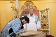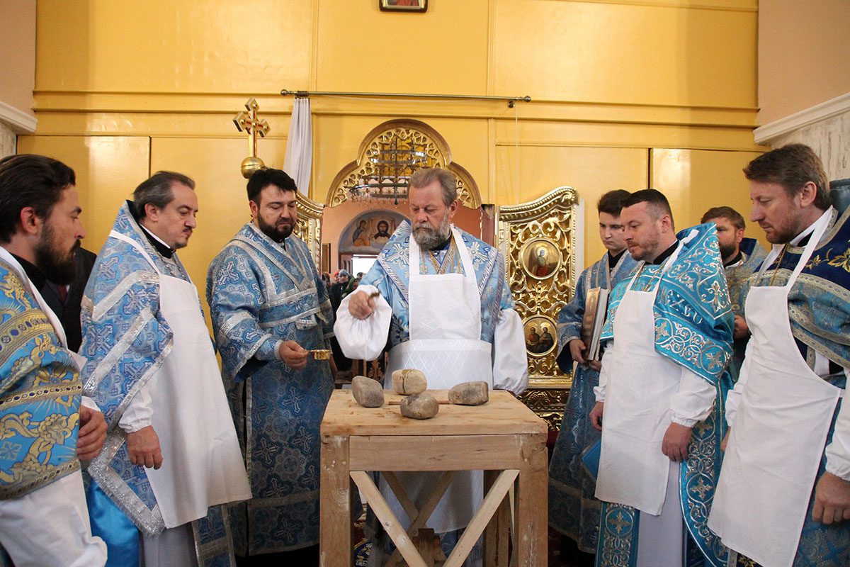 Serviciul divin, la care s-au rugat alături de Înaltpreasfinţia Sa, Prot. mitr. Vadim Cheibaş, Secretar mitropolitan, Prot. mitr. Teodor Pelin, Protopopul bisericilor din raioanele Criuleni şi Dubăsari şi un numeros sobor preoțesc, a început cu rânduiala de sfinţire a prestolului.