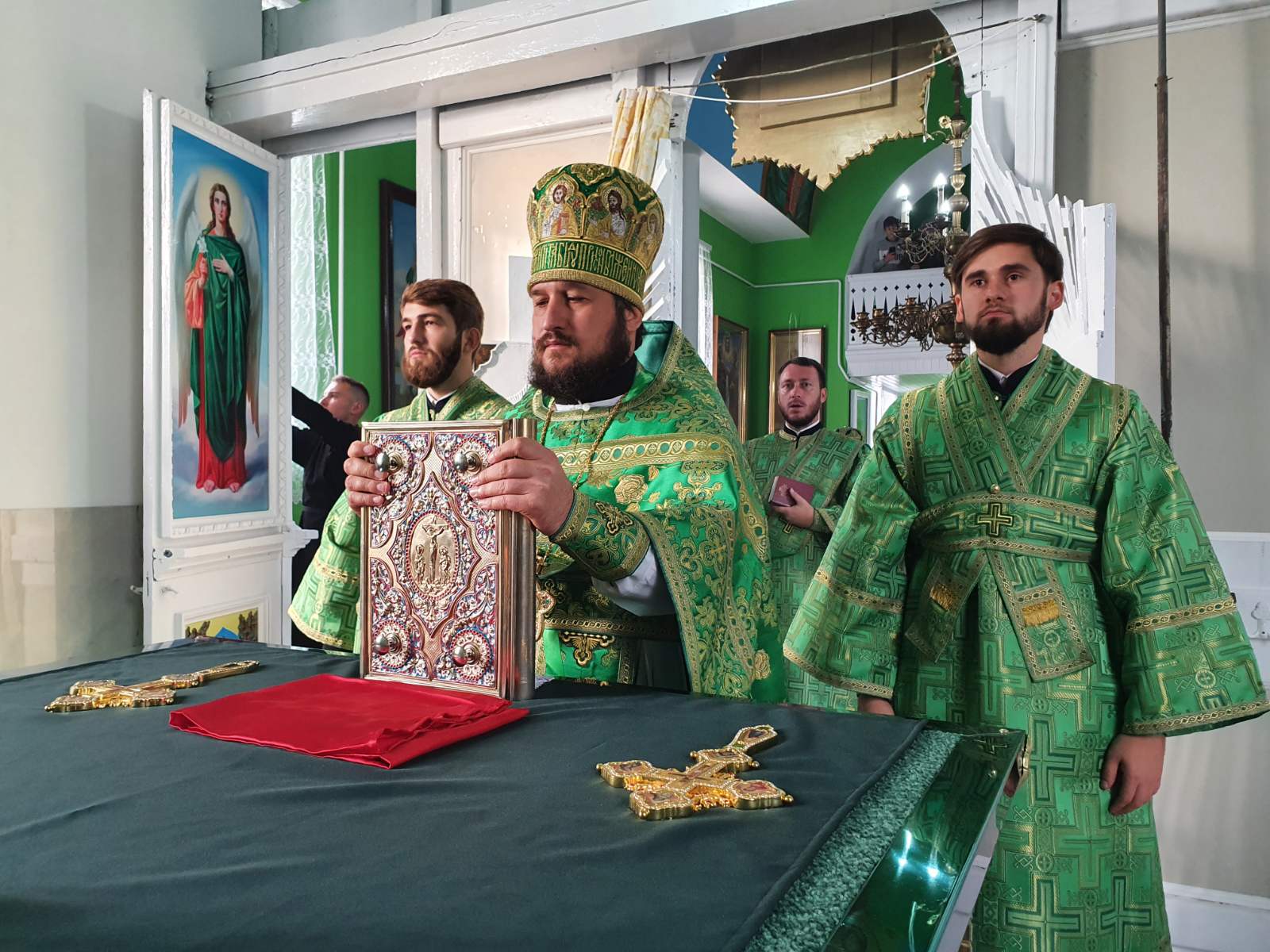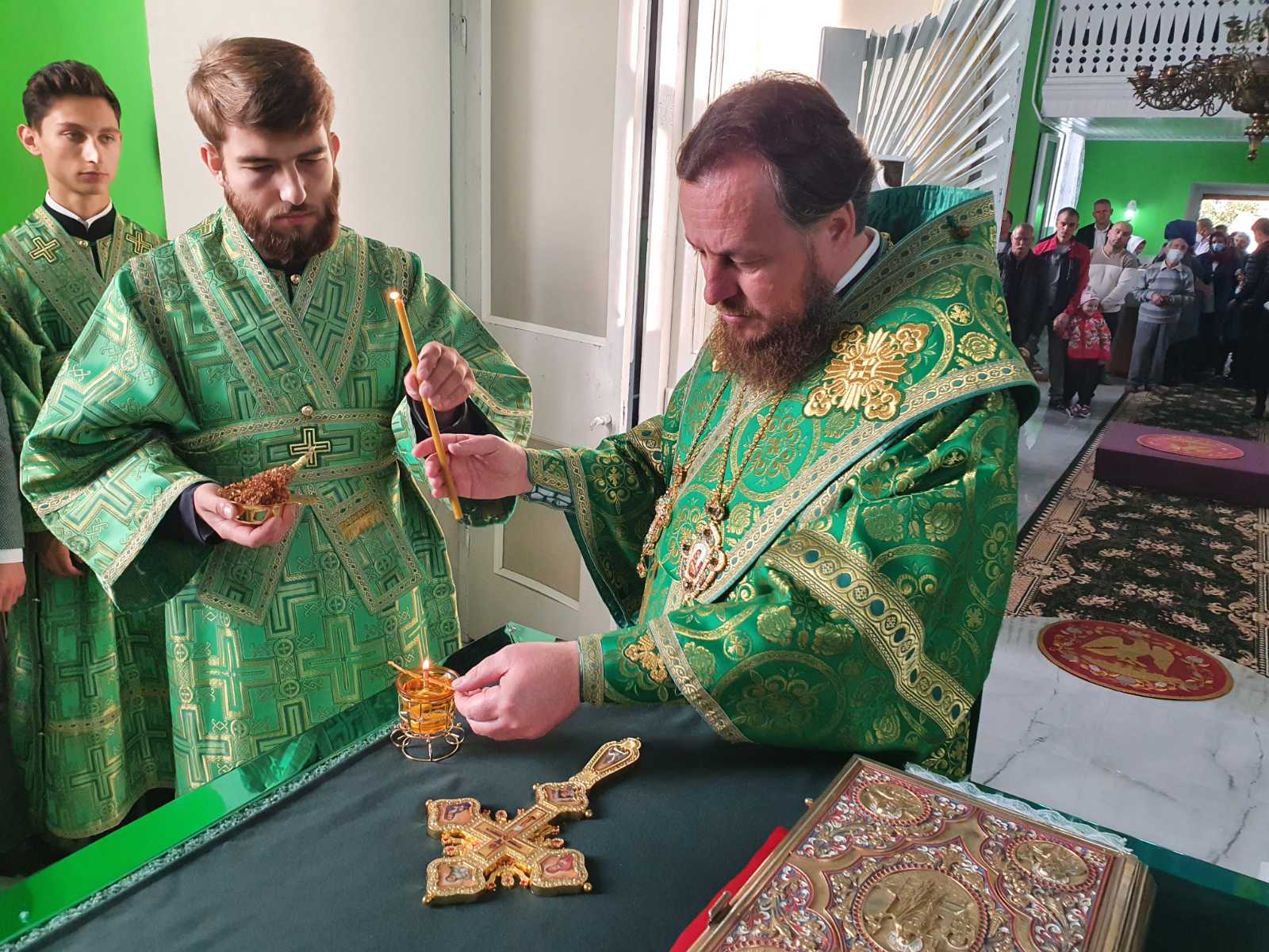 Împreună cu Episcopul Ioan s-au rugat Protoiereul mitrofor Nicolae Craveț, Secretar al Vicariatului Soroca, preotul Serghei Cucereavîi, paroh al bisericii, preoți și diaconi soroceni.