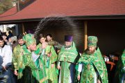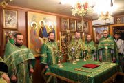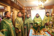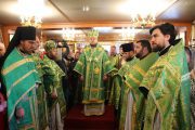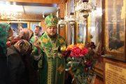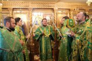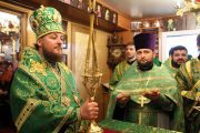 Slujba a început cu sfinţirea prestolului, după care a fost oficiată Sfânta şi Dumnezeiasca Liturghie, în timpul căreia parohul bisericii, preotul Adrian Frunză, cu binecuvântarea Întâistătătorului a fost ridicat în treapta de protoiereu, pentru truda depusă la înălţarea sfântului lăcaş.