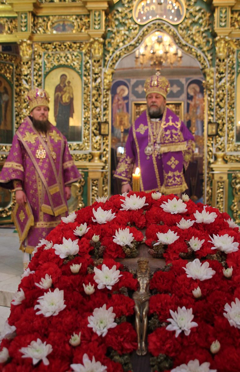 În timpul serviciului divin, arhiereii și slujitorii coliturghisitori s-au rugat dimpreună cu poporul iubitor de Dumnezeu, pentru ca să primească de la Domnul Hristos, prin Sfânta și dătătoarea de Viață Cruce, apărare de rele, virtuți duhovniceși și cale de nădejde spre viața veșnică.
