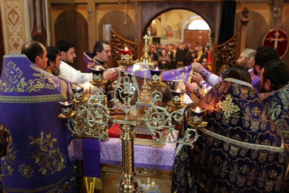 În dimineaţa zilei, ÎPS Mitropolit Vladimir, înconjurat de un sobor de preoţi, a oficiat Sf. Liturghie în biserica Învierii.
