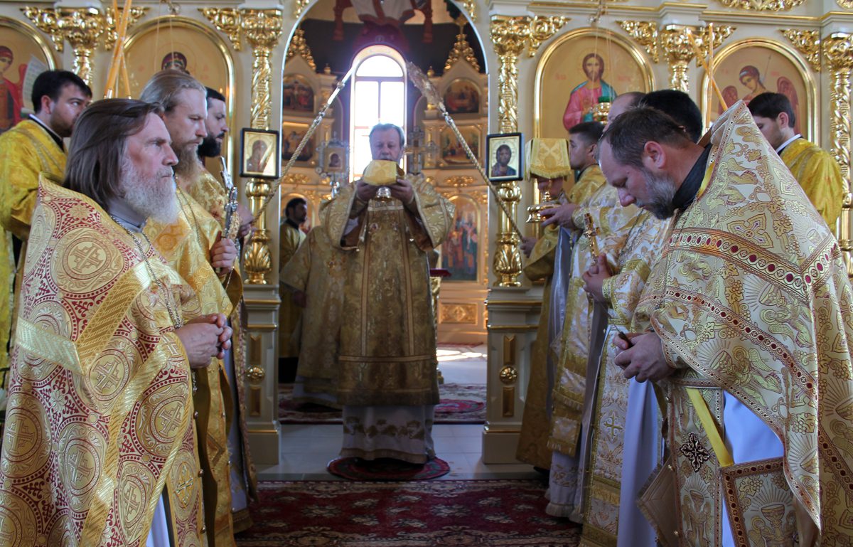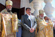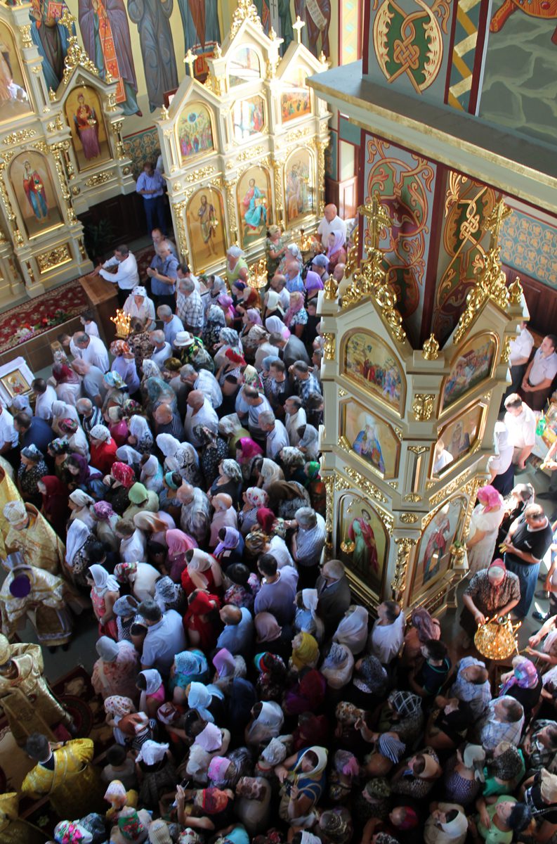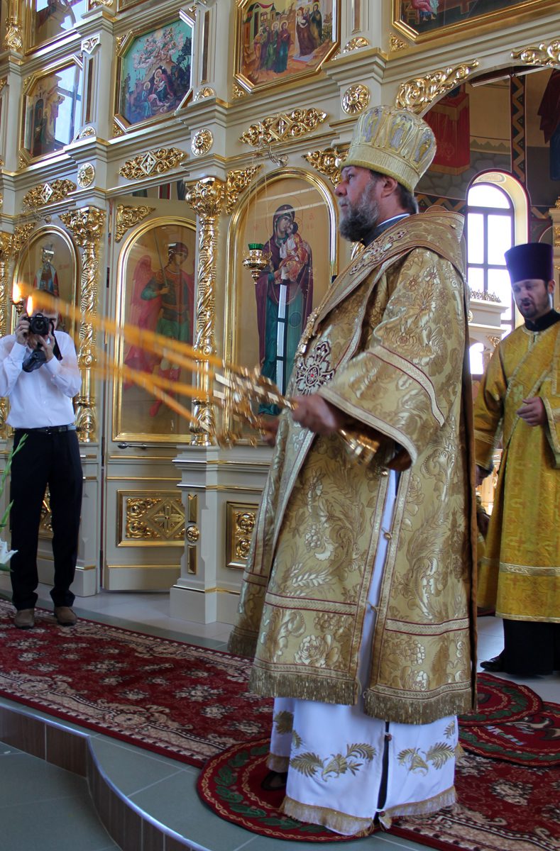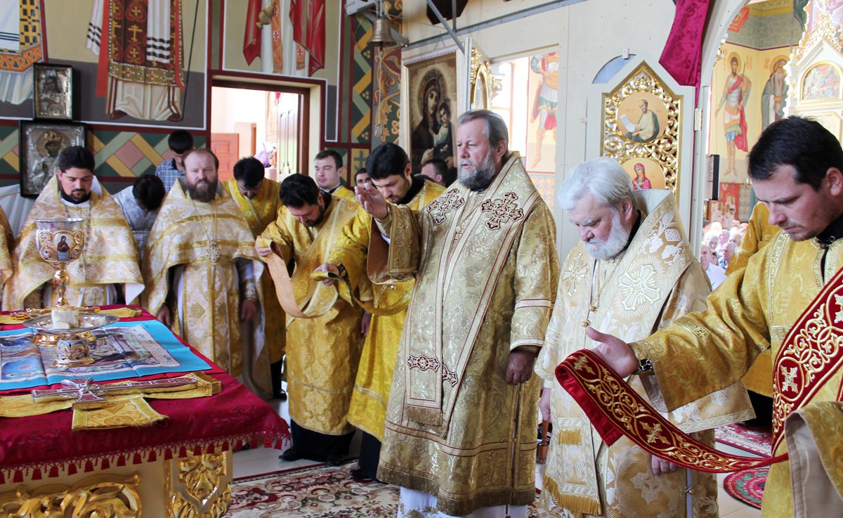 În continuare, după rostirea Rugăciunii Domneşti, creştinii, avându-l în frunte pe Chiriarh au înconjurat biserica cu citirea din Sfânta Evanghelie, iar mai apoi, Înaltpreasfinţitul Mitropolit Vladimir i-a felicitat pe toţi cei prezenţi cu prilejul frumoasei sărbători, îndemânându-i să se bucure din tot sufletul de noua şi frumoasa biserică din Basarabeasca ce îşi are uşile deschise pentru tot sufletul dornic de mângâiere duhovnicească şi să păstreze cu sfinţenie această comoară pentru urmaşii urmaşilor lor.