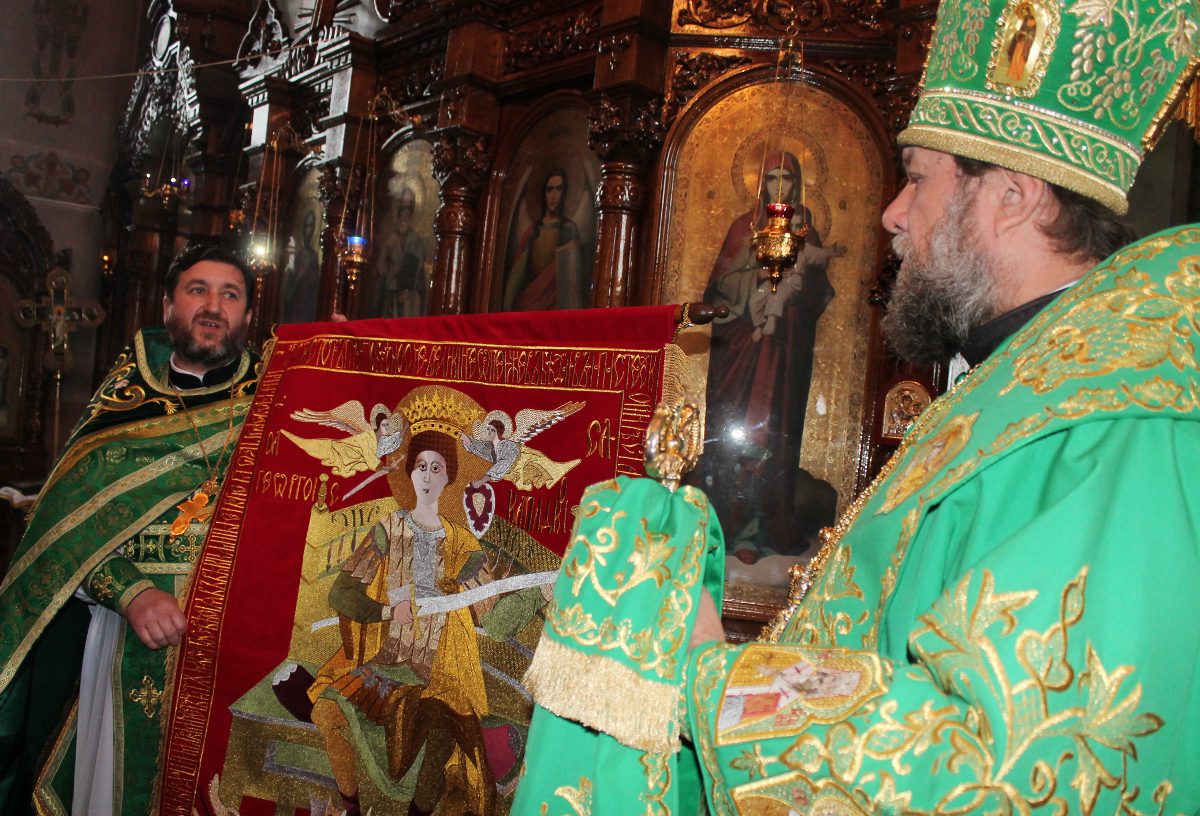 La rândul său, părintele Vetcislav Cazacu i-a mulțumit Arhipăstorului pentru bunăvoința părintească și i-a adus în dar o copie fidelă a steagului lui Ștefan cel Mare și Sfânt, realizată în atelierul parohiei „Sf. Parascheva”.