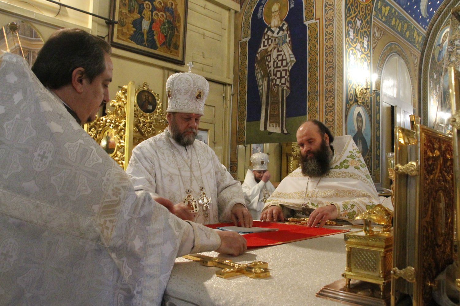 Vlădica Vladimir a a avut parte de alese felicitări și din partea secretarului mitropolitan Prot. mitr. Vadim Cheibaș, care a vorbit din partea slujitorilor Catedralei mitropolitane, mulțumind Arhipăstorului pentru grija Sa părintească și pentru dragostea pe care o are față de cler și popor.