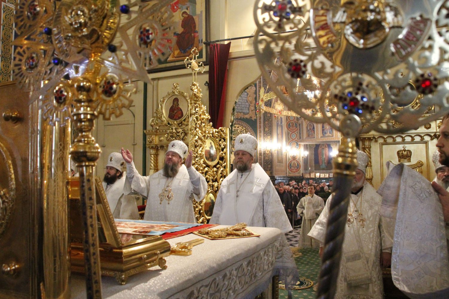 În ziua de astăzi prăznuim „Soborul Maicii Domnului.” Cuvânt bisericesc, „sobor” însemnează „adunare de oameni” şi în împrejurarea de acum el vrea să spună două lucruri: întâi, cuvântul acesta este o chemare către cei credincioşi, să ne adunăm astăzi, în cinstea Maicii Domnului, aici pe pământ; dar, pe de altă parte, cuvântul „sobor” ne aduce aminte că Maica Domnului se află preaslăvită, fără de asemănare, în mijlocul tuturor Sfinţilor fericiţi din ceruri şi că, aşa fiind, adunarea noastră de astazi, de pe pământ este, de fapt, o împreună-prăznuire a noastră cu cetele tuturor Sfinţilor şi Îngerilor din ceruri. Adunarea cea cerească, adică, se uneşte, astăzi, cu adunarea noastră pământească, la cinstirea Maicii Domnului.