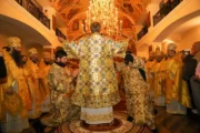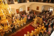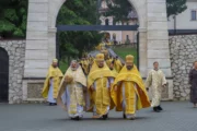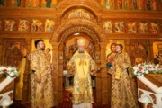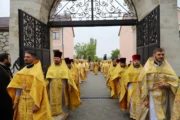 Sobor de arhierei și preoți, mulțime de credincioși adunați la Mănăstirea Suruceni pentru a-l cinsti în rugăciune pe Sfântul Ierarh Dionisie, Episcopul Cetății Albe-Ismail