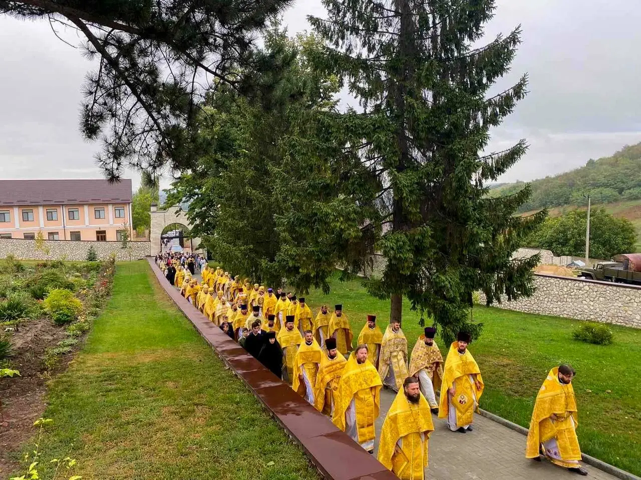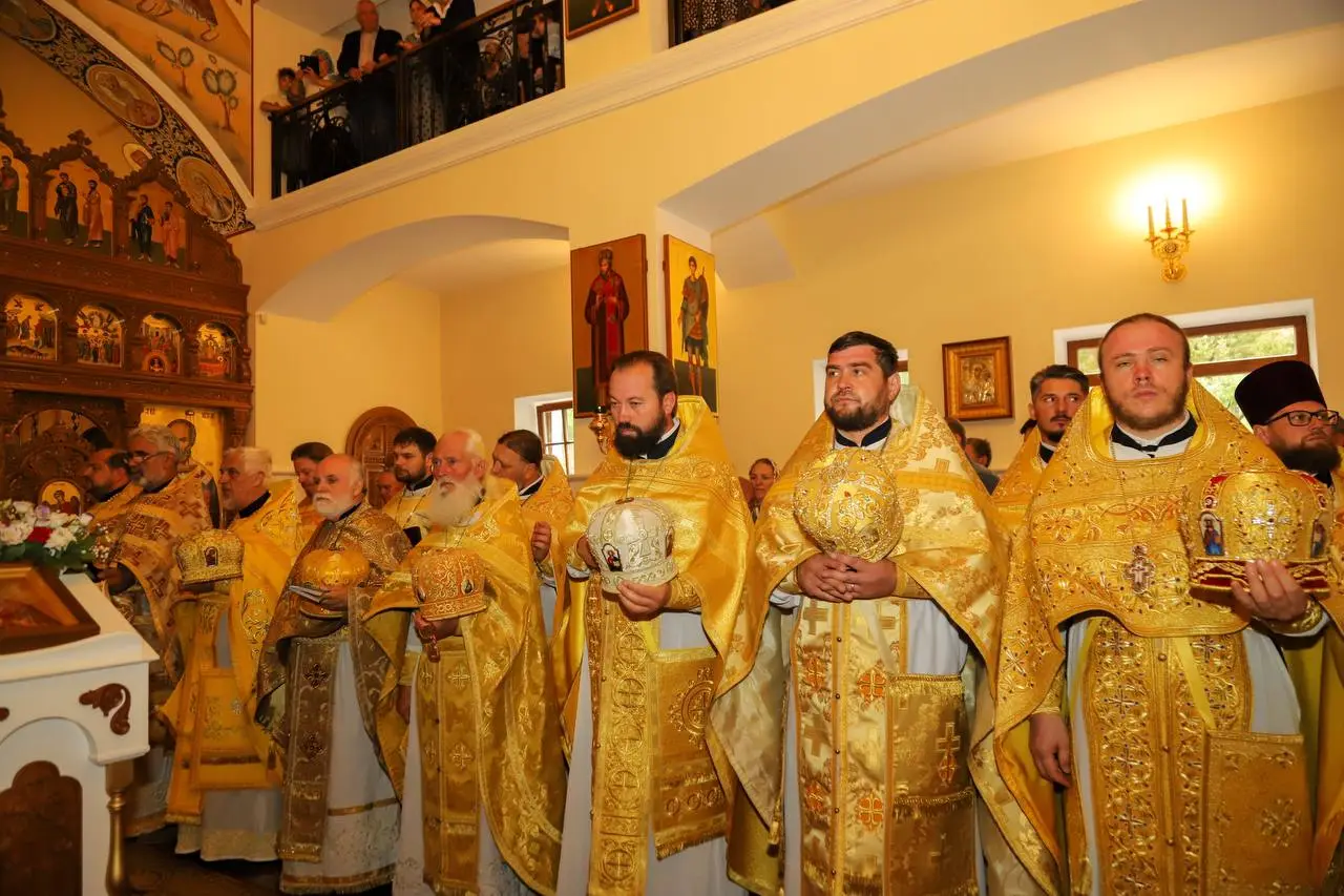Sobor de arhierei și preoți, mulțime de credincioși adunați la Mănăstirea Suruceni pentru a-l cinsti în rugăciune pe Sfântul Ierarh Dionisie, Episcopul Cetății Albe-Ismail