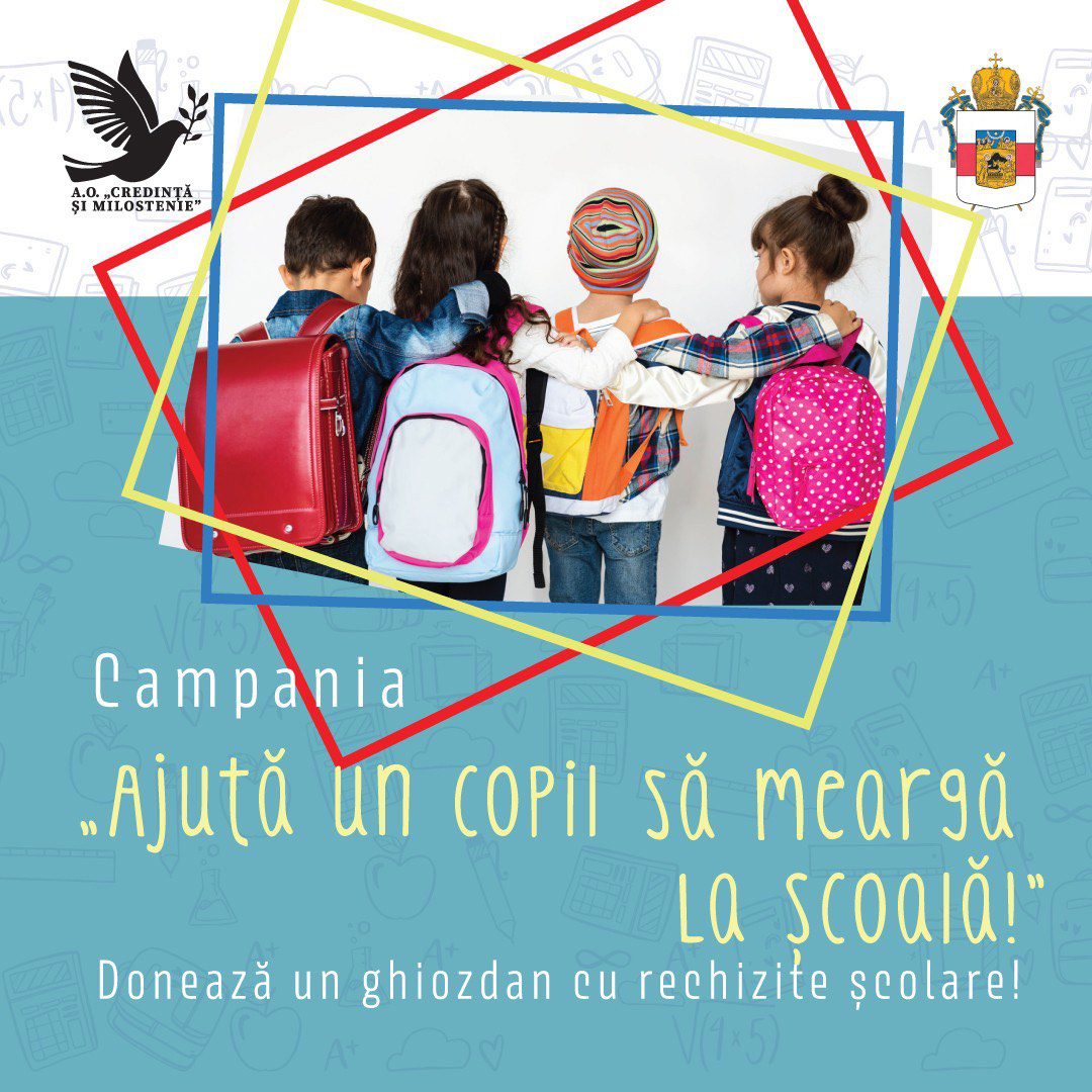 În perioada 15 iulie – 31 august 2025, cu binecuvântarea și purtarea de grijă a ÎPS Mitropolit Vladimir se desfășoară cea de-a VI-a ediție a Campaniei pentru sprijinirea copiilor defavorizați „Ajută un copil să meargă la școală!”, organizată de Sectorul Sinodal Activitate Socială și Caritate al Bisericii Ortodoxe din Moldova.