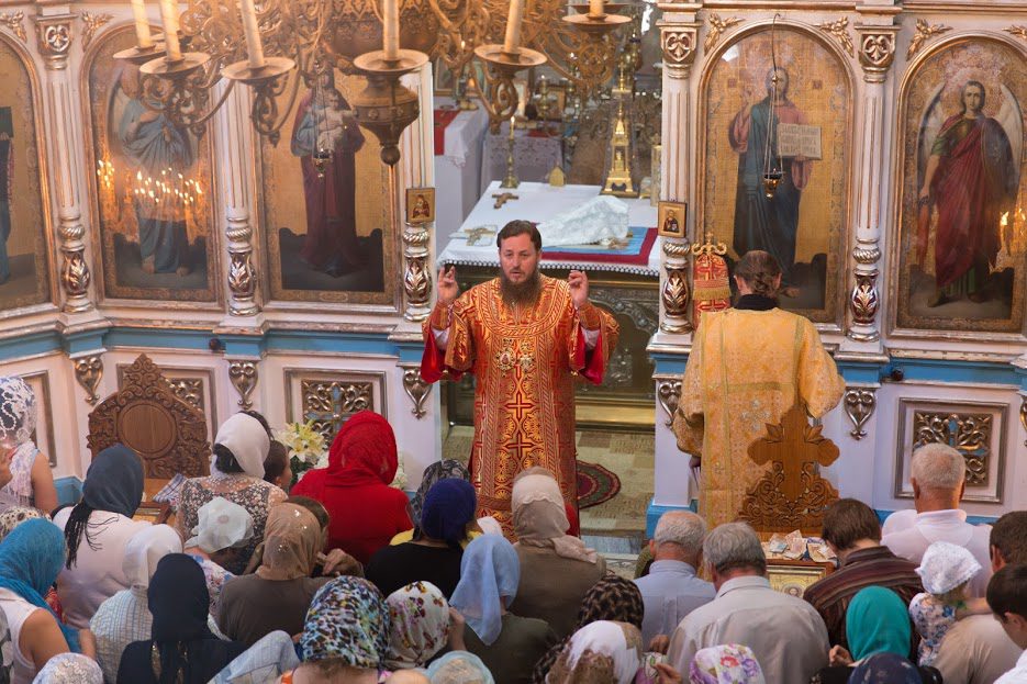 Pelerinajul a demarat cu o slujbă duminicală la Catedrala „Adormirea Maicii Domnului”, la care a participat chiar Episcopul Ioan, fiind înconjurat de un sobor de preoţi şi de mulţime de credincioşi.
