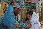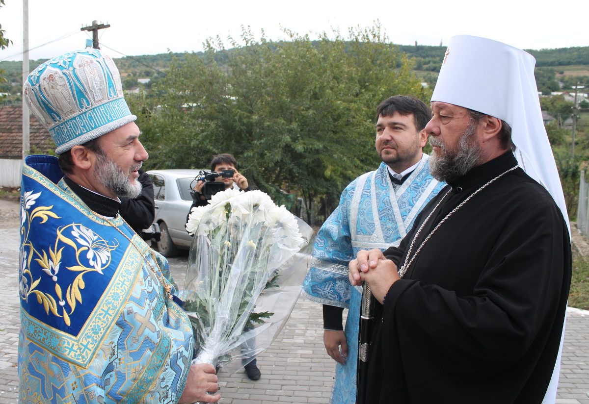 Arhiereul a fost întâmpinat cu mare drag de Protopopul de Ialoveni, Prot. Mitr. Anatolie Stefanov și Prot. Andrei Oistric, parohul sfântului lăcaș, reprezentanți ai administrației publice locale și zeci de credincioși, printre care numeroși copilași.