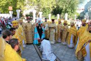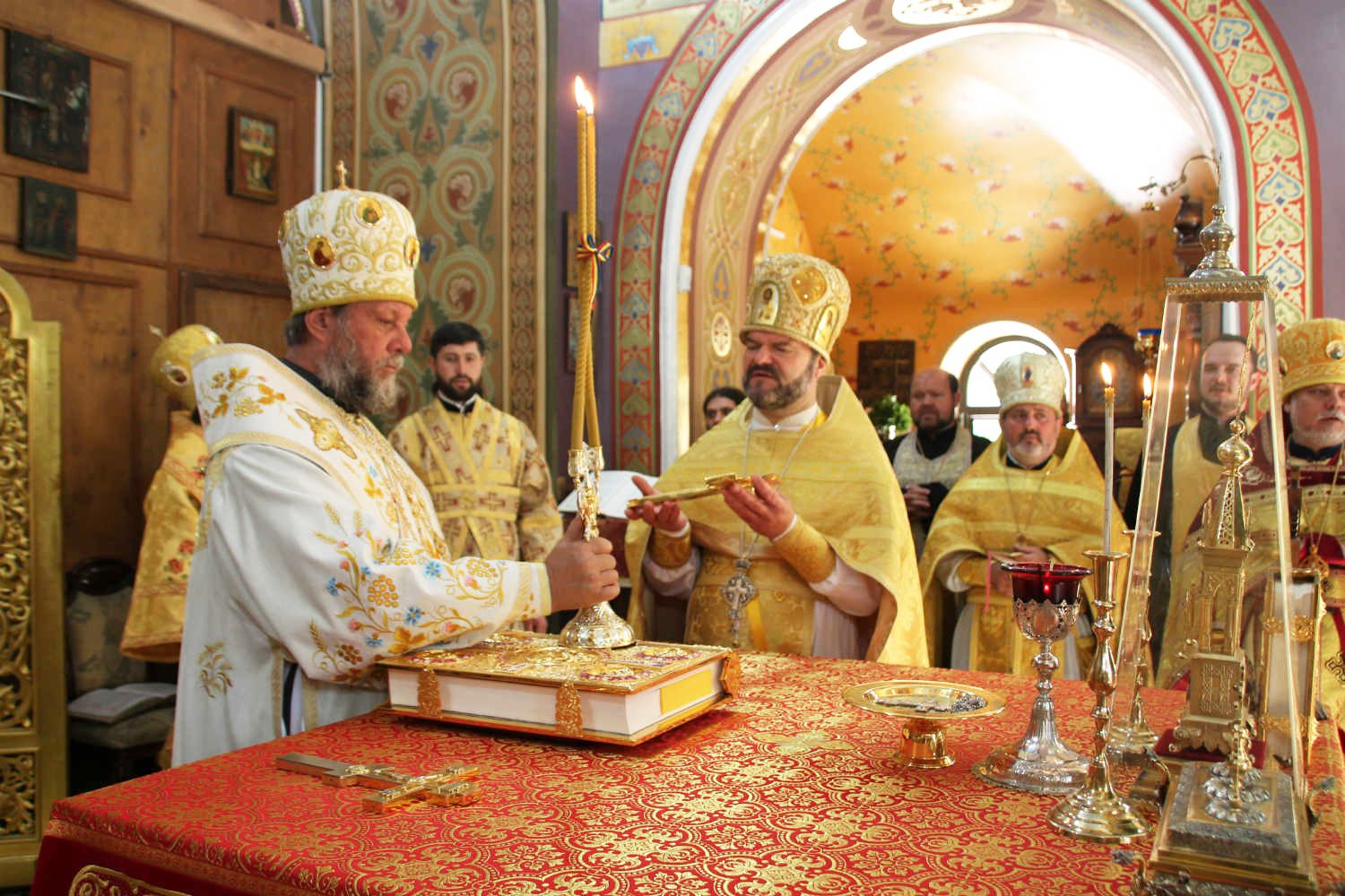 După rostirea Rugăciunii Domneşti, creştinii, avându-l în frunte pe Chiriarh au înconjurat biserica cu citirea din Sfânta Evanghelie, iar mai apoi, Înaltpreasfinţitul Mitropolit Vladimir i-a adresat un cuvânt de felicitare parohului bisericii Protoiereului mitrofor Pavel Borșevschi, dorindu-i încă mulți ani să se bucure din plin de pacea și liniștea sufletească a rugăciunii și a dragostei creștinești, împreună cu enoriașii săi.