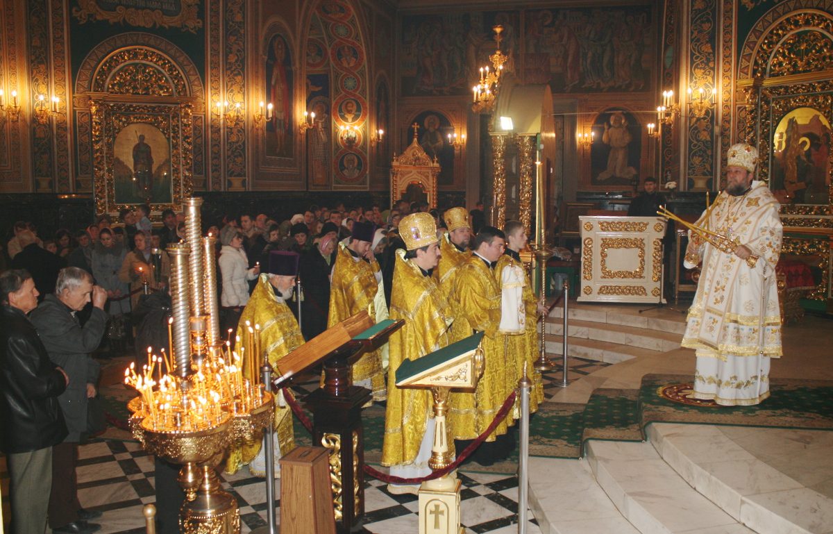 În această ultimă duminică a anului 2013, mai multe zeci de credincioşi din Chişinău au venit la Catedrala „Naşterea Domnului” pentru a da laudă Atotţiitorului şi a-I mulţumi pentru neţărmuita Sa bunătate la slujba oficiată de către Înalt Prea Sfinţitul Mitropolit Vladmir căruia i-au coliturghisit clericii sfântului lăcaş.
