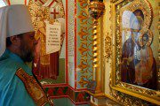 În continuare, Arhiereii au sfințit un chivot pentru Sfântul Altar și câteva candele pentru icoana cu chipul Maicii Domnului de la Hârbovăț.