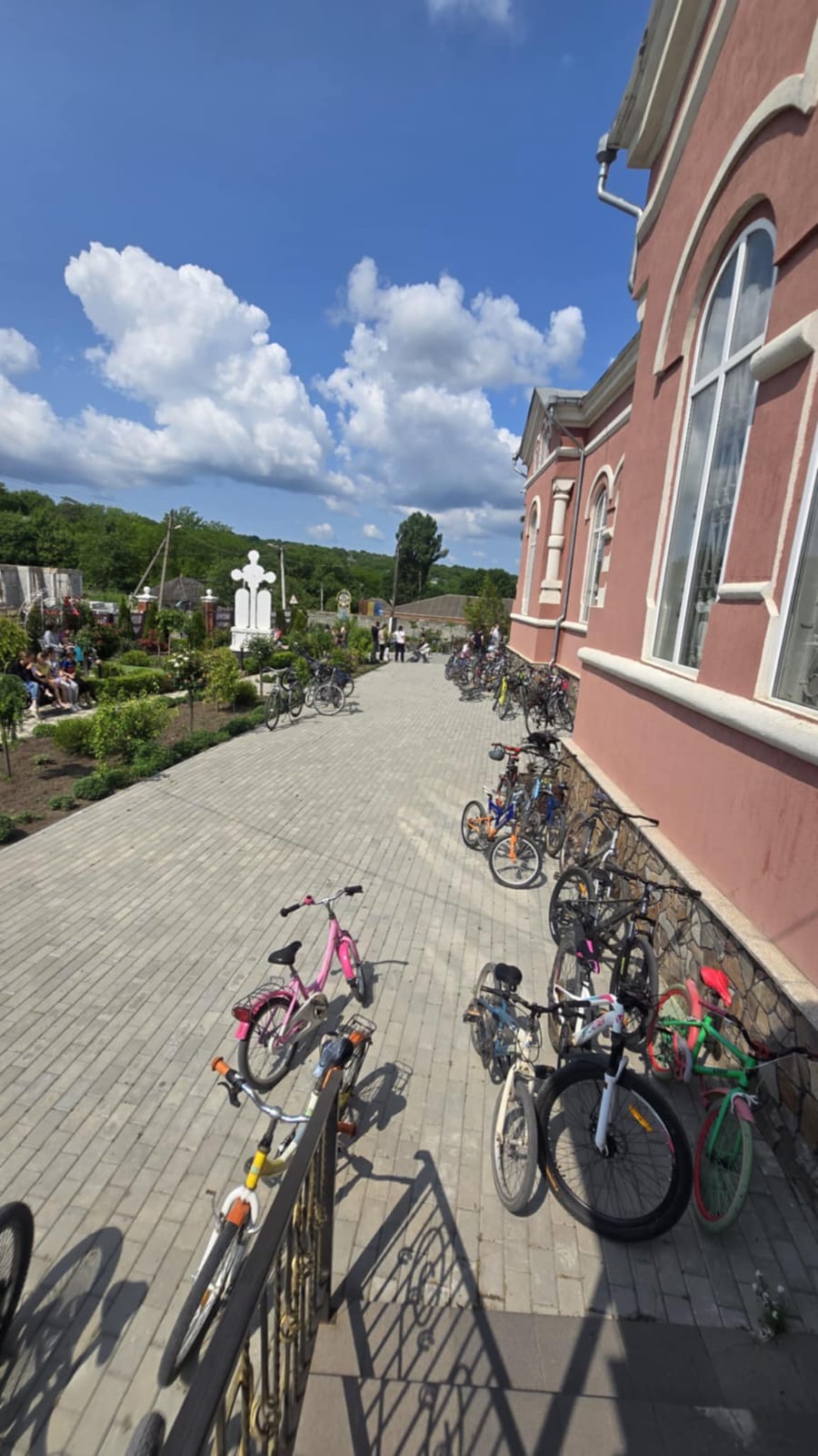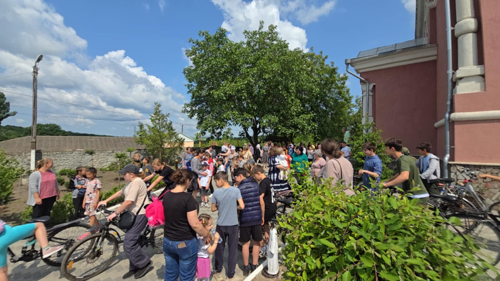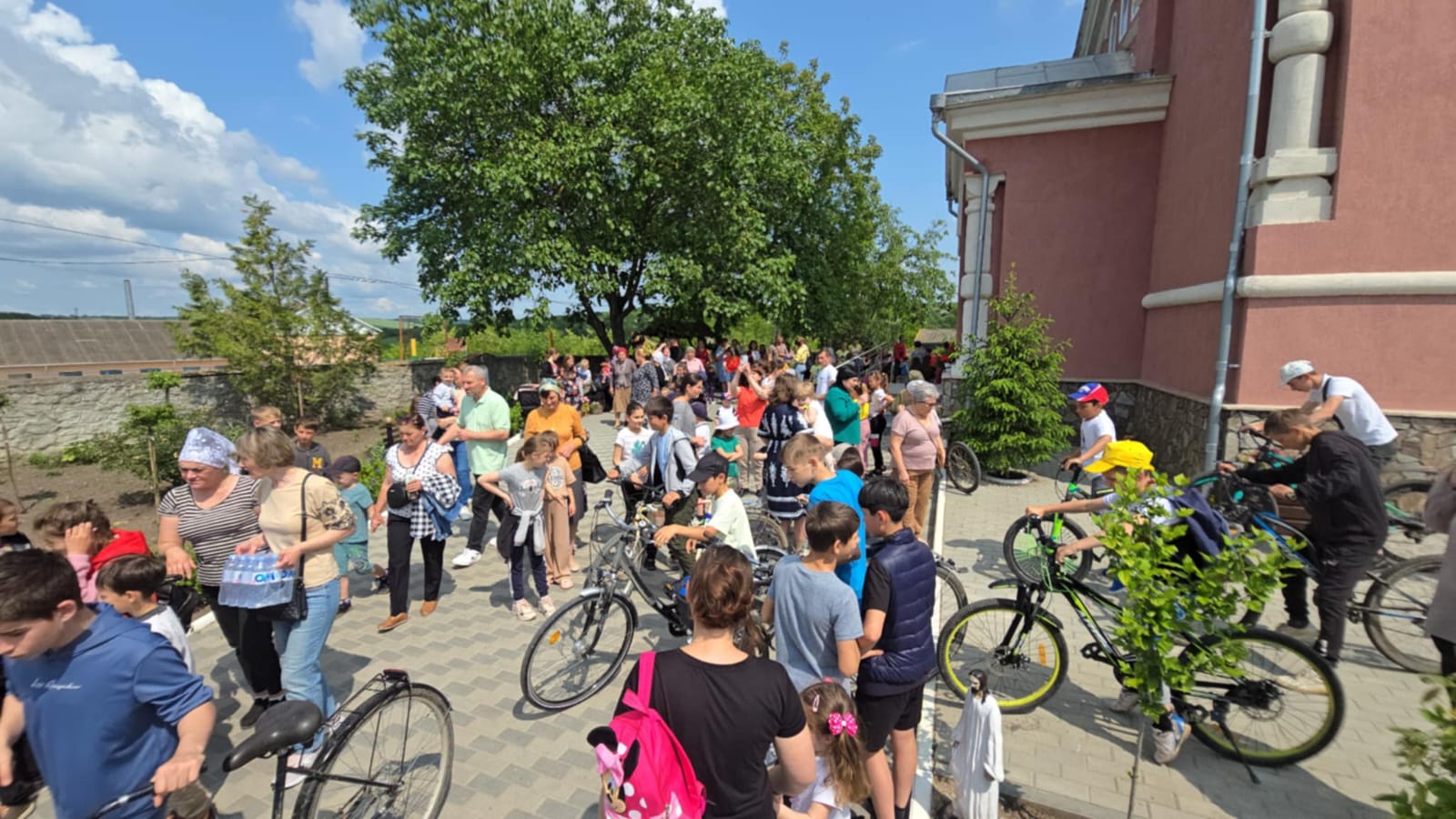 După oficierea Sfintei Liturghii, parintele Alexandru și credincioșii prezenți au înălțat rugăciuni pentru binecuvântarea traseului de 12 km parcurs pe biciclete de către copii.